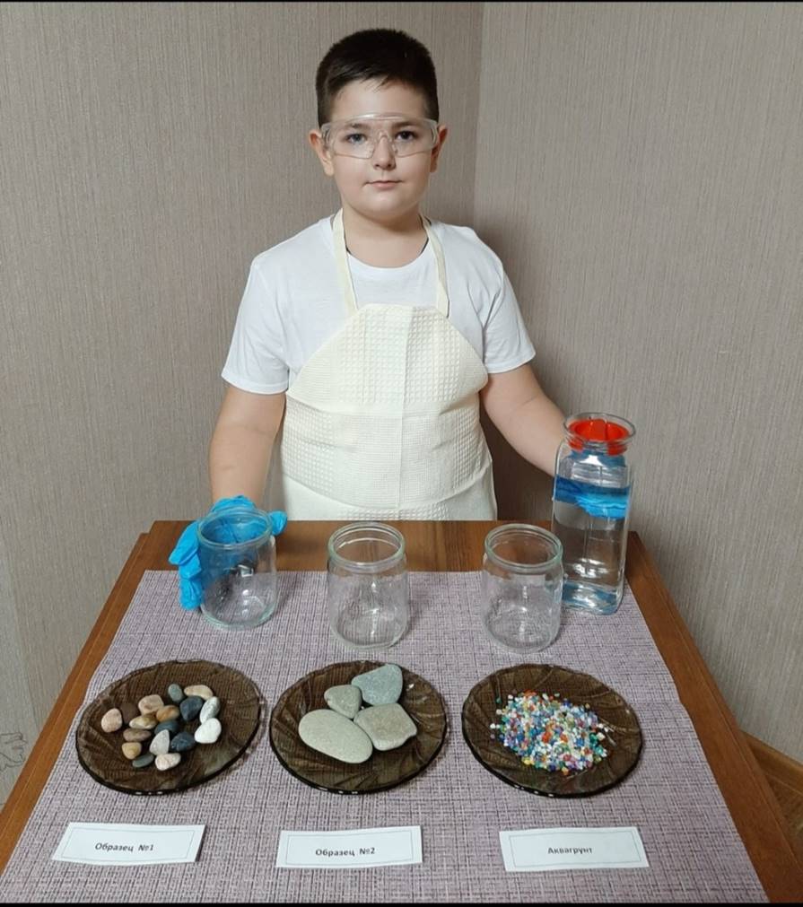 «Быстрее всего мы обнаружили известняк и песчаник, потому что известняк чаще всего имеет белый, желтоватый, светло-серый или светло-бежевый цвет, реже бывает розоватым. А песчаник похож на известняк, но с полосатой поверхностью. Несложно было узнать и кварцит, так как он имеет полупрозрачную структуру. А вот прочные и тяжёлые камни с красными вкраплениями оказались гранитом. Оказывается, гранит часто используют при изготовлении лестниц, колонн, памятников. А ещё этот камень – один из древнейших на Земле. Говорят, что кроме нашей планеты гранит не встречается больше нигде. Наверное, поэтому геологи называют его «визитной карточкой Земли». По серебристому блеску удалось различить – гнейс, а по множественным полоскам – роговик. Мои исследования показали, что большую часть гальки составляет песчаник – около 52 %», – рассказал Арсений.