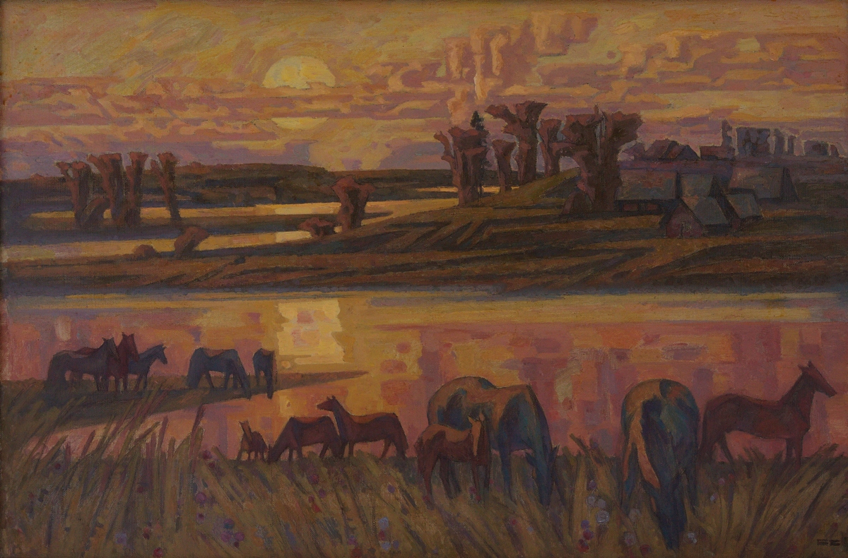 В постоянной экспозиции демонстрируется пейзаж Виктора Блинова «Золотой вечер». Конечно, все знают имение Пушкиных Михайловское в Псковской губернии, в котором любил бывать поэт. Имение принадлежало его деду — Осипу Абрамовичу Ганнибалу, а потом перешло в собственность поэта. Природа этих мест неизменно вдохновляла и творчески питала Пушкина. В Михайловском он общался с крестьянами, наблюдал за народной жизнью с еë традициями и обрядами, слышал настоящую русскую речь.
