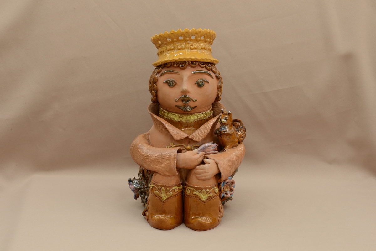 Образы литературных героев воплощаются не только художниками-живописцами, графиками, но и мастерами декоративно-прикладного искусства. Герои из творчества Пушкина привлекли керамиста Елену Кадееву. Автор творчески переработала образы князя Гвидона и Царевны-Лебеди из «Сказки о царе Салтане».
