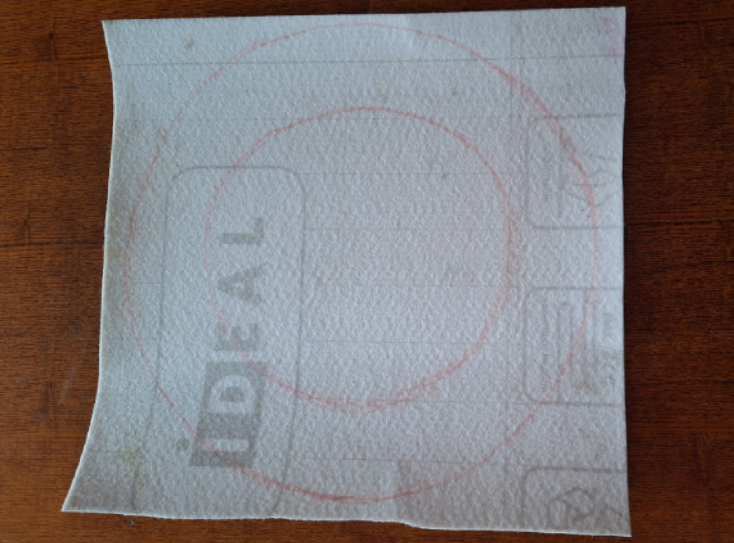1. На линолеуме вырисовываем маркером форму будущего венка.