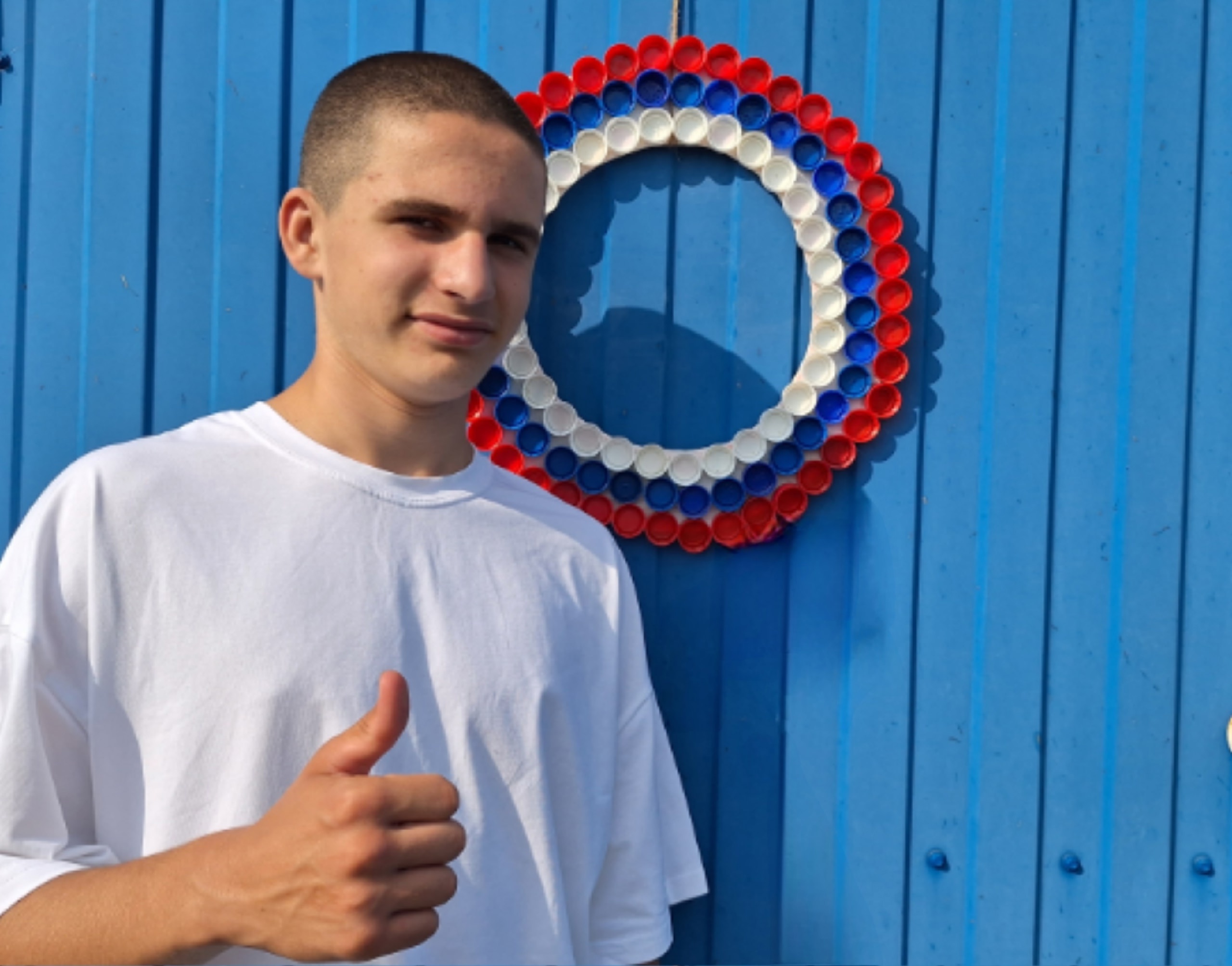 В преддверии праздника, Дня флага России, который отмечается 22 августа, многие жители украшают свои окна символами страны, на улицы вывешивают флаг. А я решил украсить входную калитку во двор венком цвета флага российского триколора.
