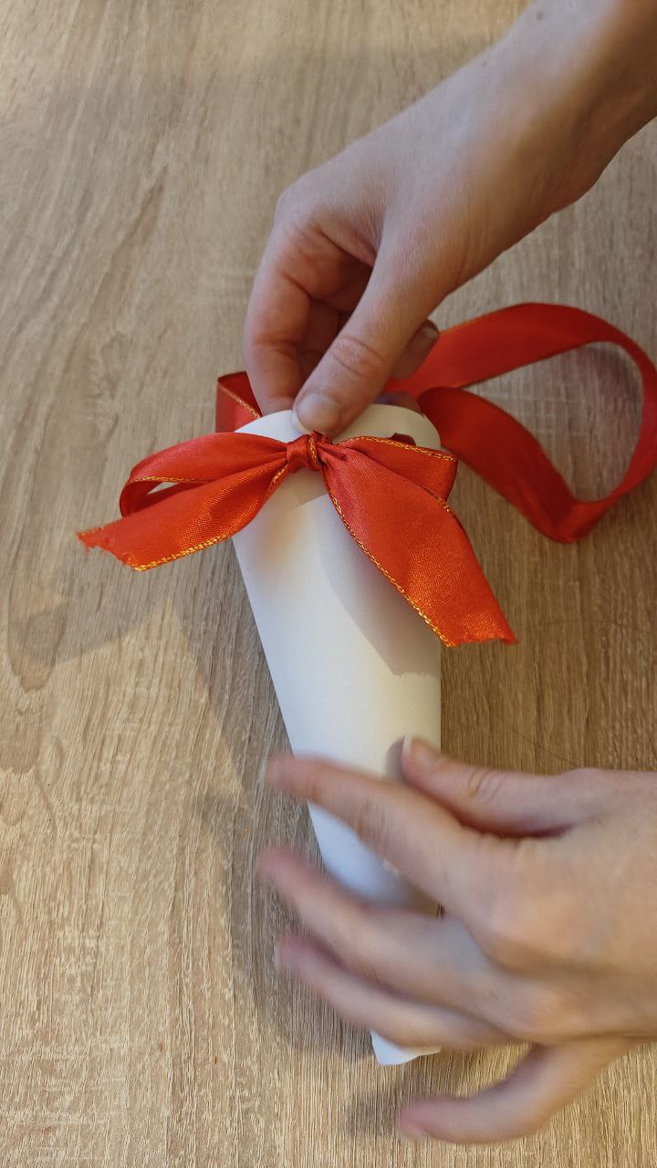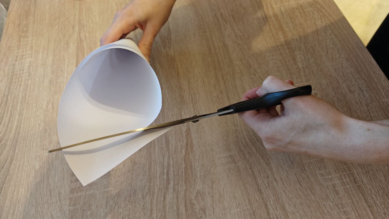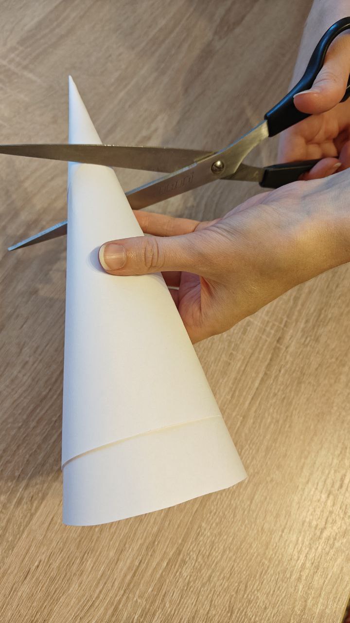В верхней части скрученной заготовки отрежьте всё лишнее, чтобы получился ровный срез.