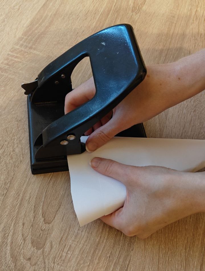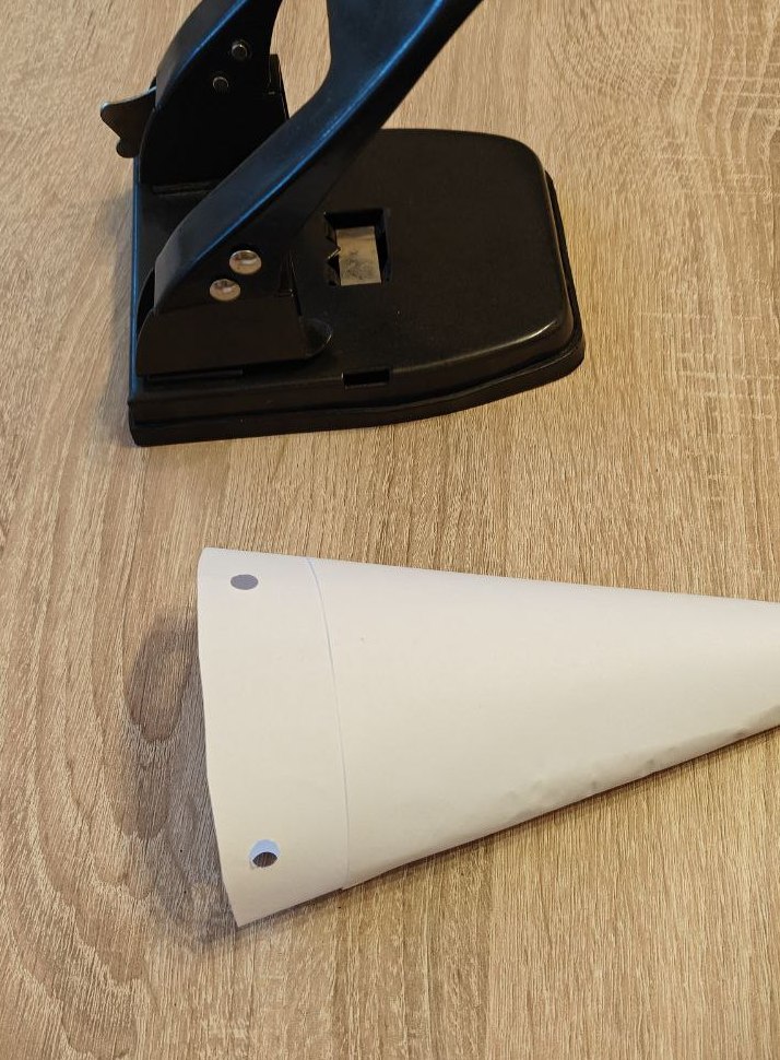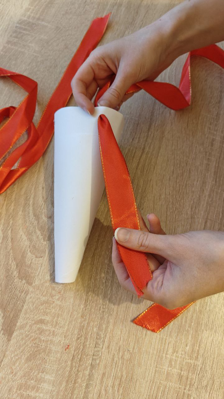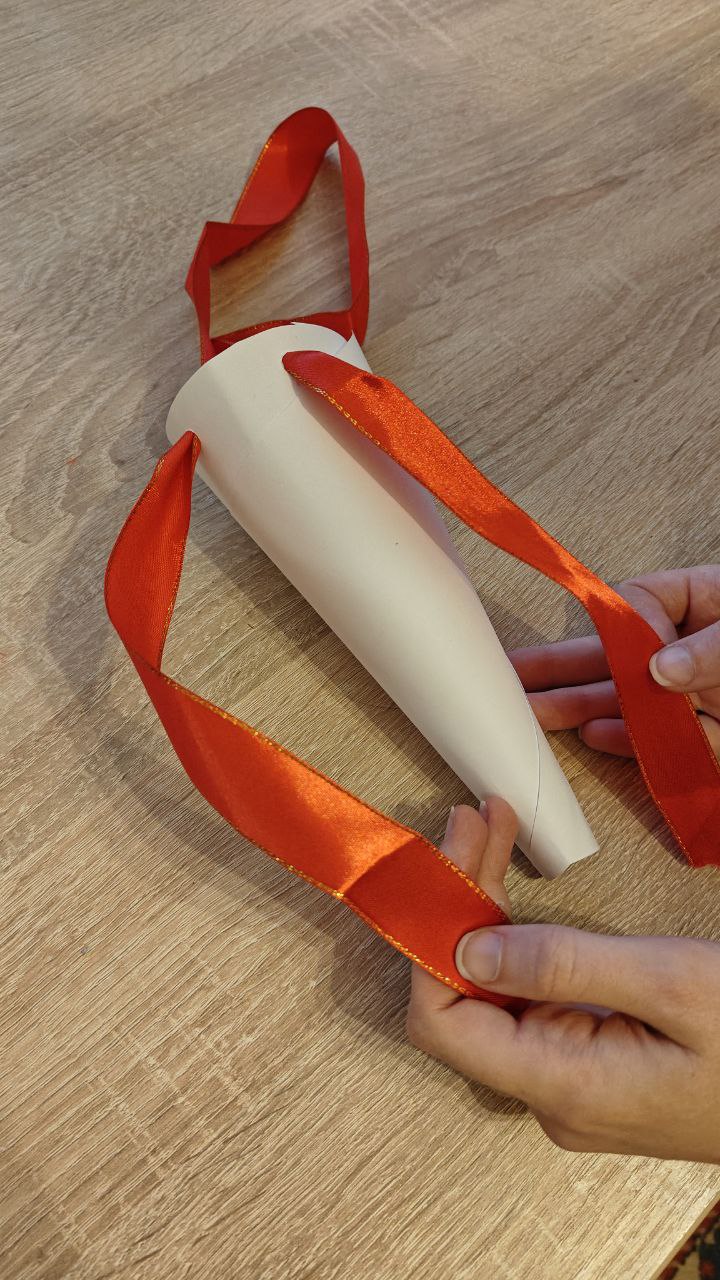 Сверните лист формата А4, формируя конус (следуйте фотопримеру). Место стыка хорошо проклейте клеем-карандашом. НА ЗАМЕТКУ! Вы можете взять белый лист бумаги или же любого другого цвета, который будет хорошо сочетаться с оттенками вашего цветочного букета.