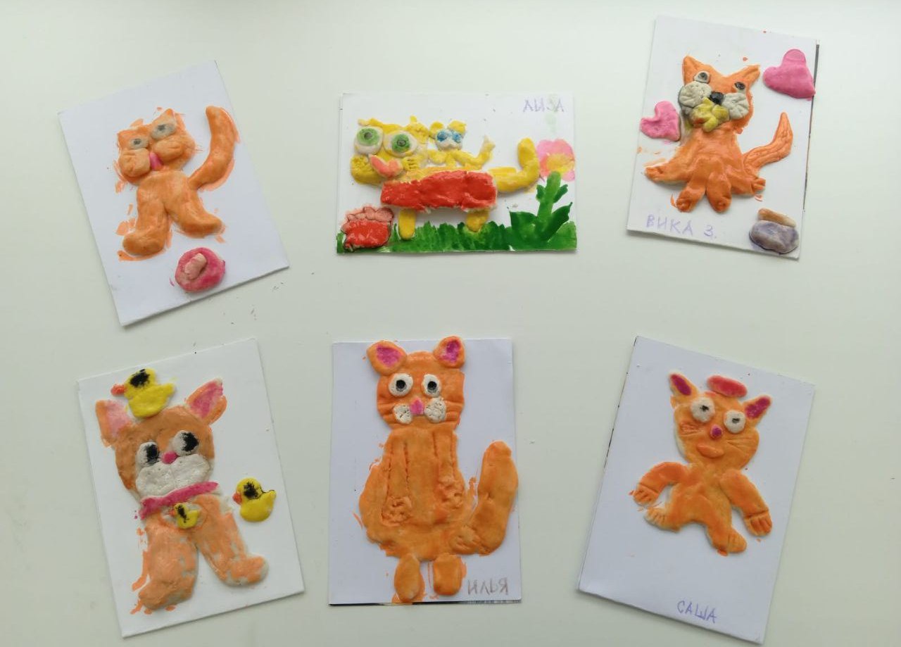 Последний этап – творческий «Открываем таланты». Основная цель этого этапа — полная самостоятельность в работе. На этом этапе дети выполняют более сложные работы: лепят животных — тигрёнка, кота с сосисками, собачку Чапу.