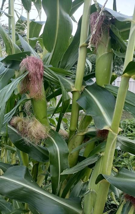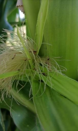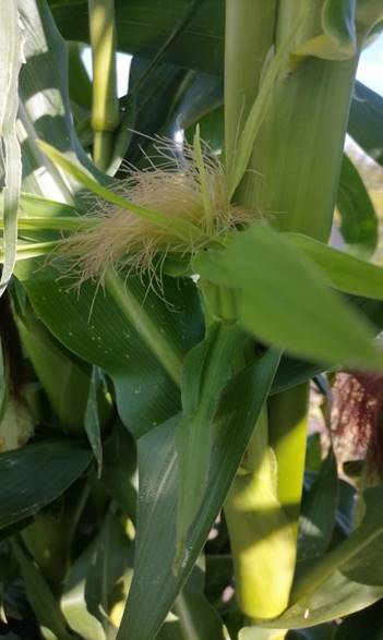 И вот на опытных делянках зацвела кукуруза! Ну что же, часть кукурузы (чтобы можно было сравнить) оставили как есть, на другой дважды дополнительно опылили: первый раз – в момент массового появления рылец (столбиков) из обёрток початка; второй – через пять дней. Кстати, пыльцу для опыления собирали только зрелую (она при потряхивании султана пылит) и с хорошо развитых растений.