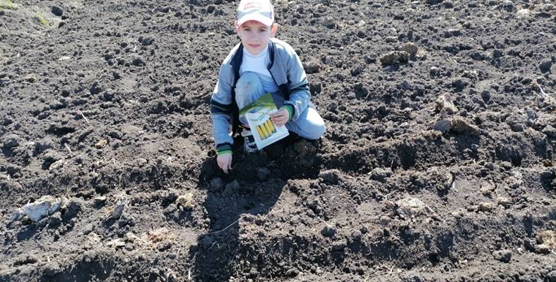 Что же делать? Помочь им опылиться? Как? Сейчас мы вам расскажем. Итак, Егор, как самый настоящий исследователь, решил на своём участке вырастить кукурузу. В апреле с родителями подготовили землю, в мае (5-го числа), когда установилась тёплая погода и почва хорошенечко прогрелась – посеяли семена кукурузы. Ну а после – неоднократные рыхление, прополка сорняков, прореживание, окучивание… Словом, долгая и кропотливая работа.