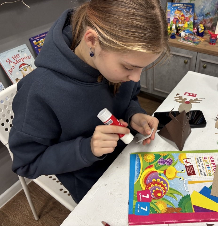 Под руководством библиотекаря участники создавали своих оленей из различных материалов: цветной бумаги, цветного картона, ножниц и клея. В зале царила атмосфера тишины, сосредоточенности и вдохновения.