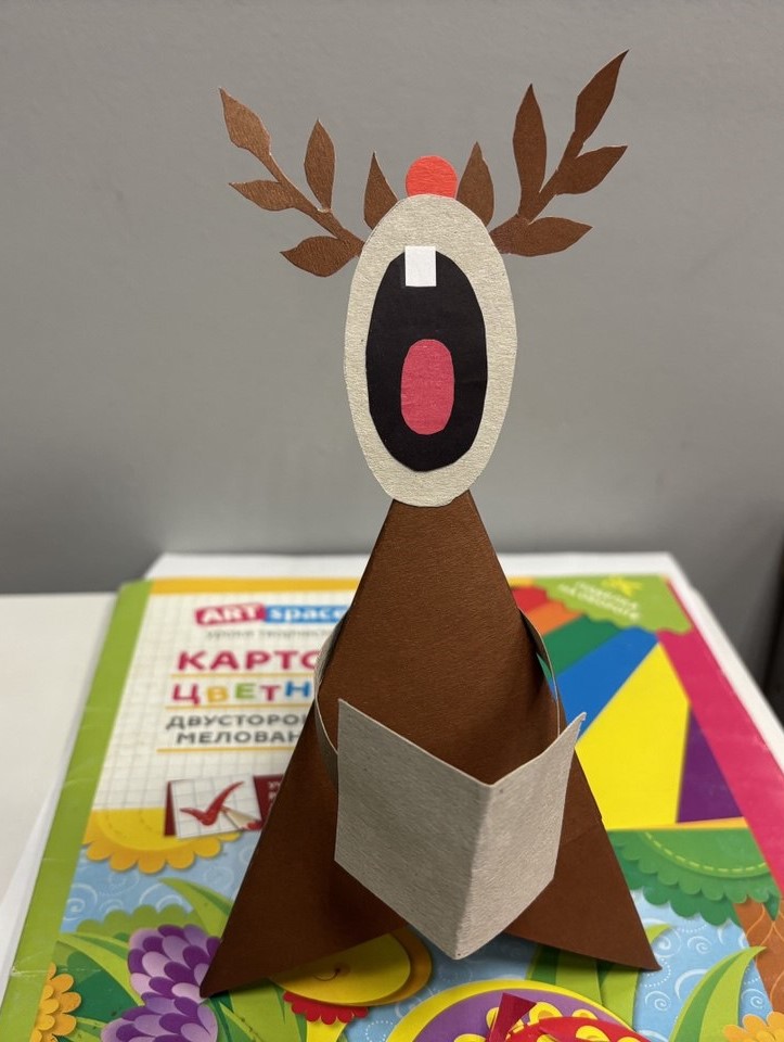 Мальчишки и девчонки узнали, что по Восточному календарю символом 2026 года является Красная Огненная Лошадь. Однако ребята решили смастерить не лошадку, а благородного оленя. Именно он ассоциируется у детей с новогодними праздниками. А ещё он имеет глубокую символику в различных культурах и представлен в современном искусстве.