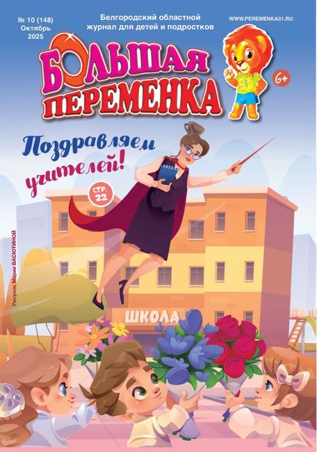 Журнал «Большая переменка» зарегистрирован 16 июля 2013 года Управлением Федеральной службы по надзору в сфере связи, информационных технологий и массовых коммуникаций по Белгородской области. ПИТУ31-00162. Учредитель и издатель – АНО «Издательский дом «Мир Белогорья». Адрес учредителя и издателя: 308009, город Белгород, проспект Славы, 100
