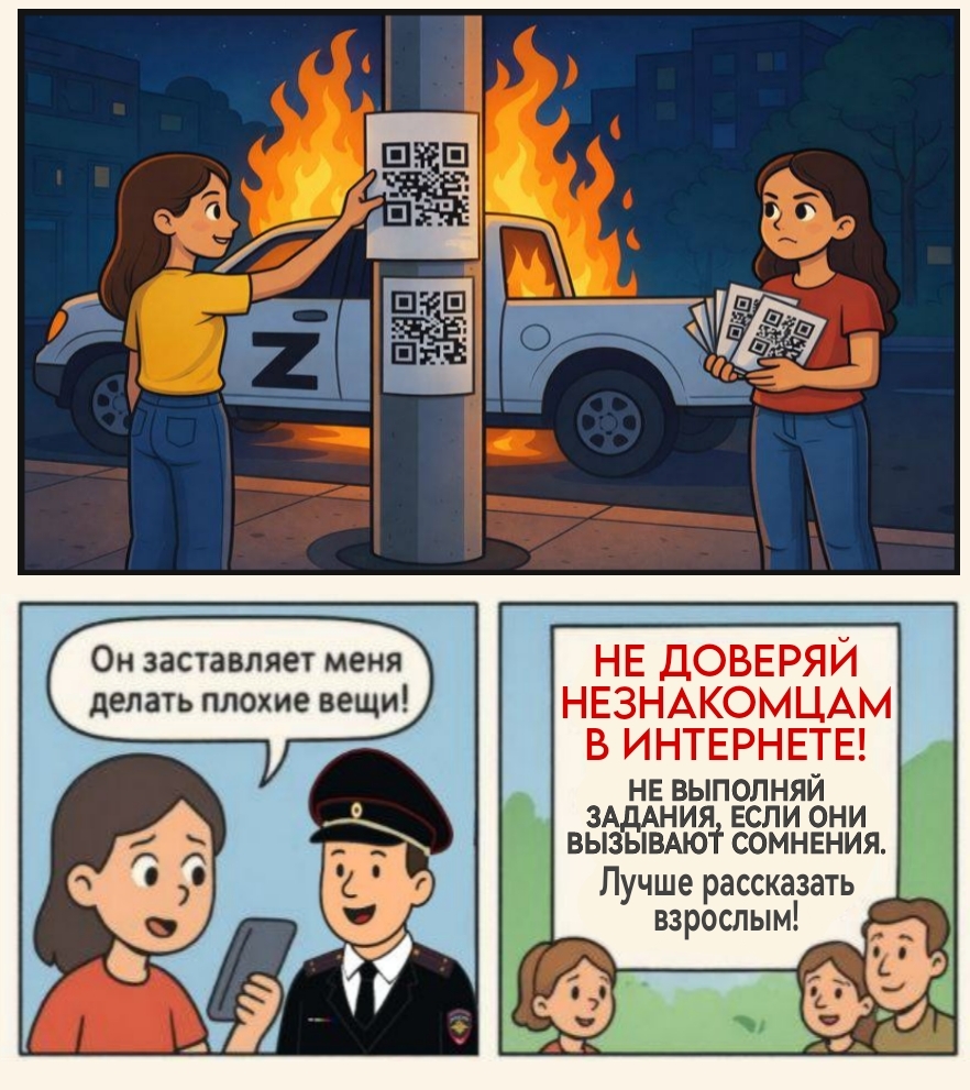 При этом преступники начинают с малого. Просят для начала сфотографировать что‑то и отправить им. За это платят какие‑то деньги. А потом предлагают либо отнести в определённую точку запрещённые вещества, либо сжечь трансформаторную будку или машину. Мало того, последнее время враги нашей страны пытаются сделать из таких вот помощников живые бомбы, предлагая перемешать взрывчатые вещества.