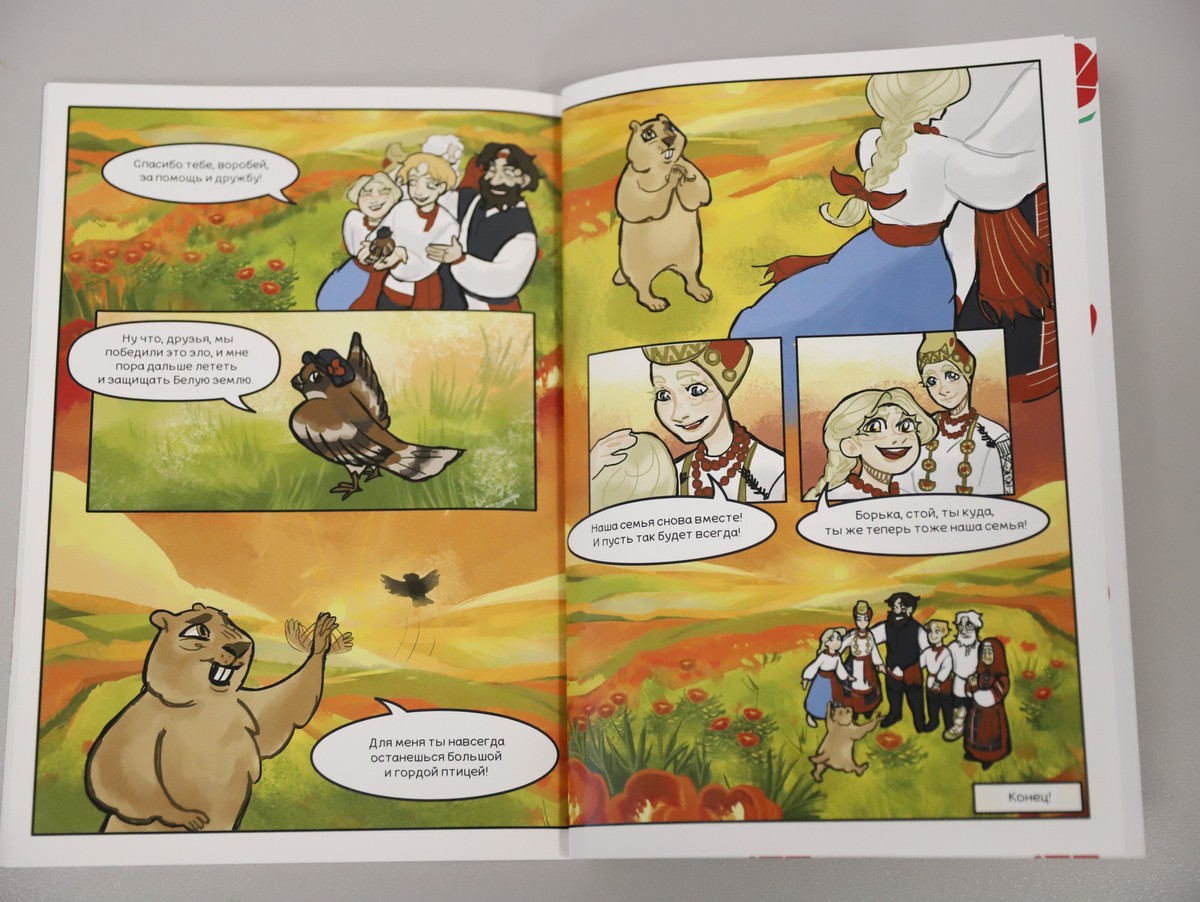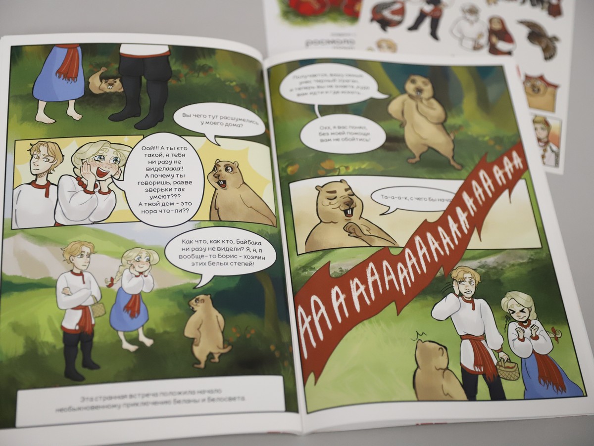 «Так как история выходила достаточно серьёзной, нам хотелось добавить в неё весёлую нотку, отвлекающие моменты и найти такого героя, который стал бы для Беланы и Белосвета другом, помогал бы справиться с трудностями и давал бы детям и подросткам ощущение безопасности, – рассказывает Мария. – Байбаки интересны тем, что живут семьями в меловых холмах, и в Вейделевском округе тоже. Нам показалось, что дети запомнят его как один из символов Белгородской области наряду с присутствующими в комиксе традиционным костюмом, песней «Порушка-Параня», жалейкой».