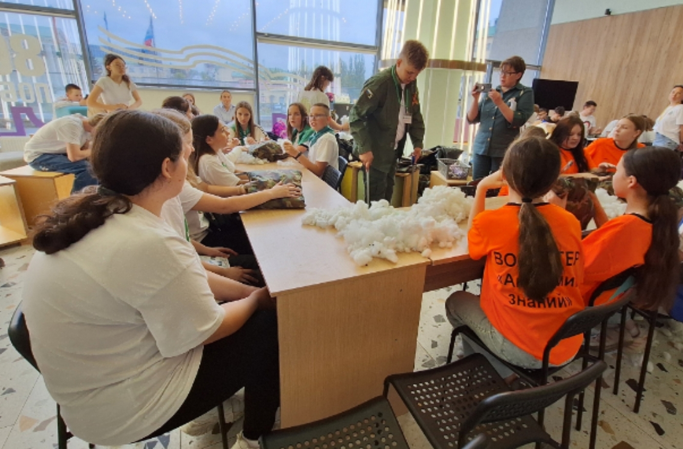 Благотворительный фонд «Обычное дело» в г. Старый Оскол вместе с генеральным директором Аркадием Костюжёвым и активистами создали проект «Солдатская подушка из игрушки». Эковолонтёры отряда «Сова» вместе с руководителем Еленой Счастливой сначала расшивают игрушки, потом разделяют детали на пуговицы, пластик и прочее. В конце берут самое главное – наполнитель, который понадобится для будущих подушек.