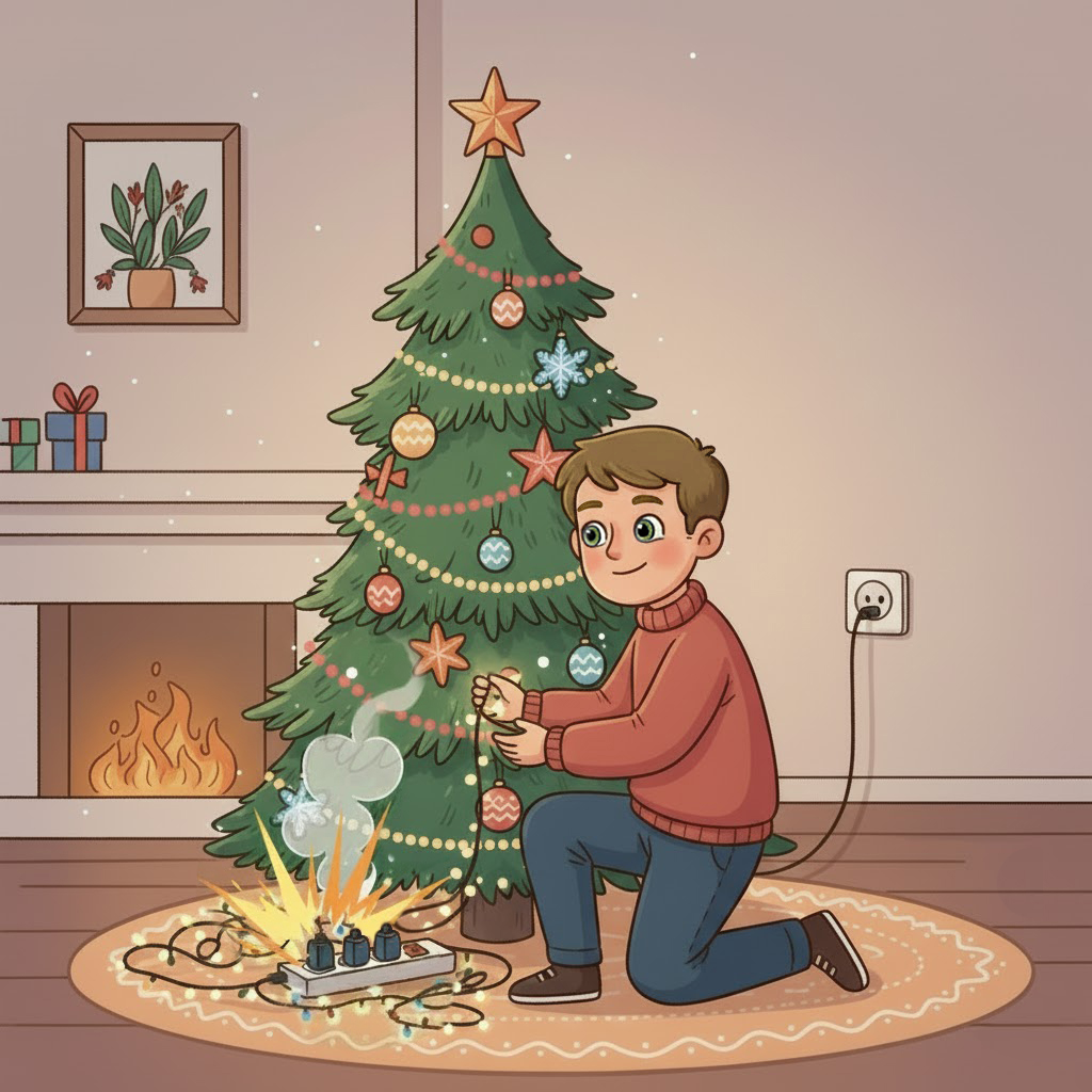 По правилам пожарной безопасности в жилых помещениях к одной розетке можно подключить не более трёх гирлянд. Если больше – может произойти перегрузка электросети и короткое замыкание (самая частая причина пожаров в домах).
