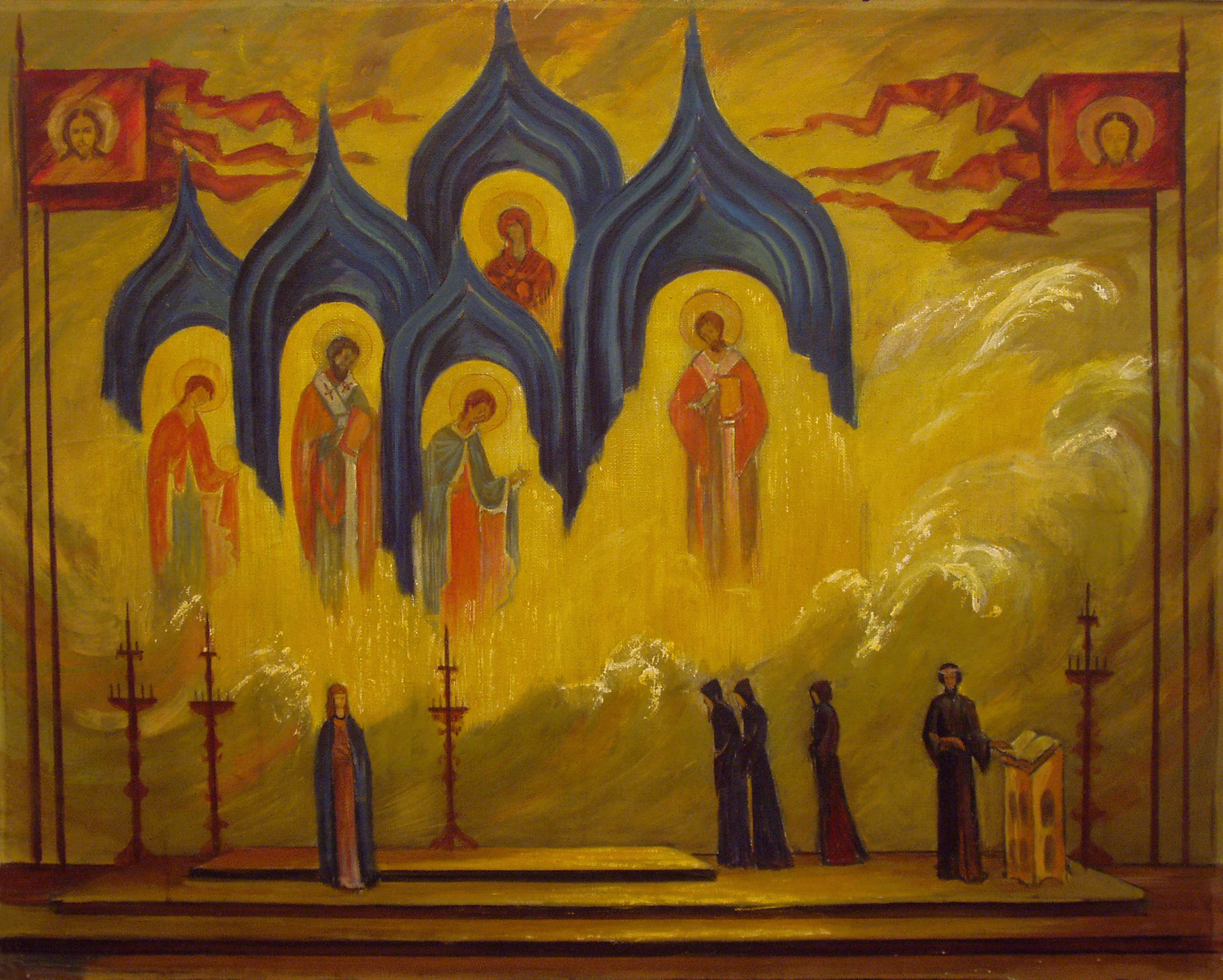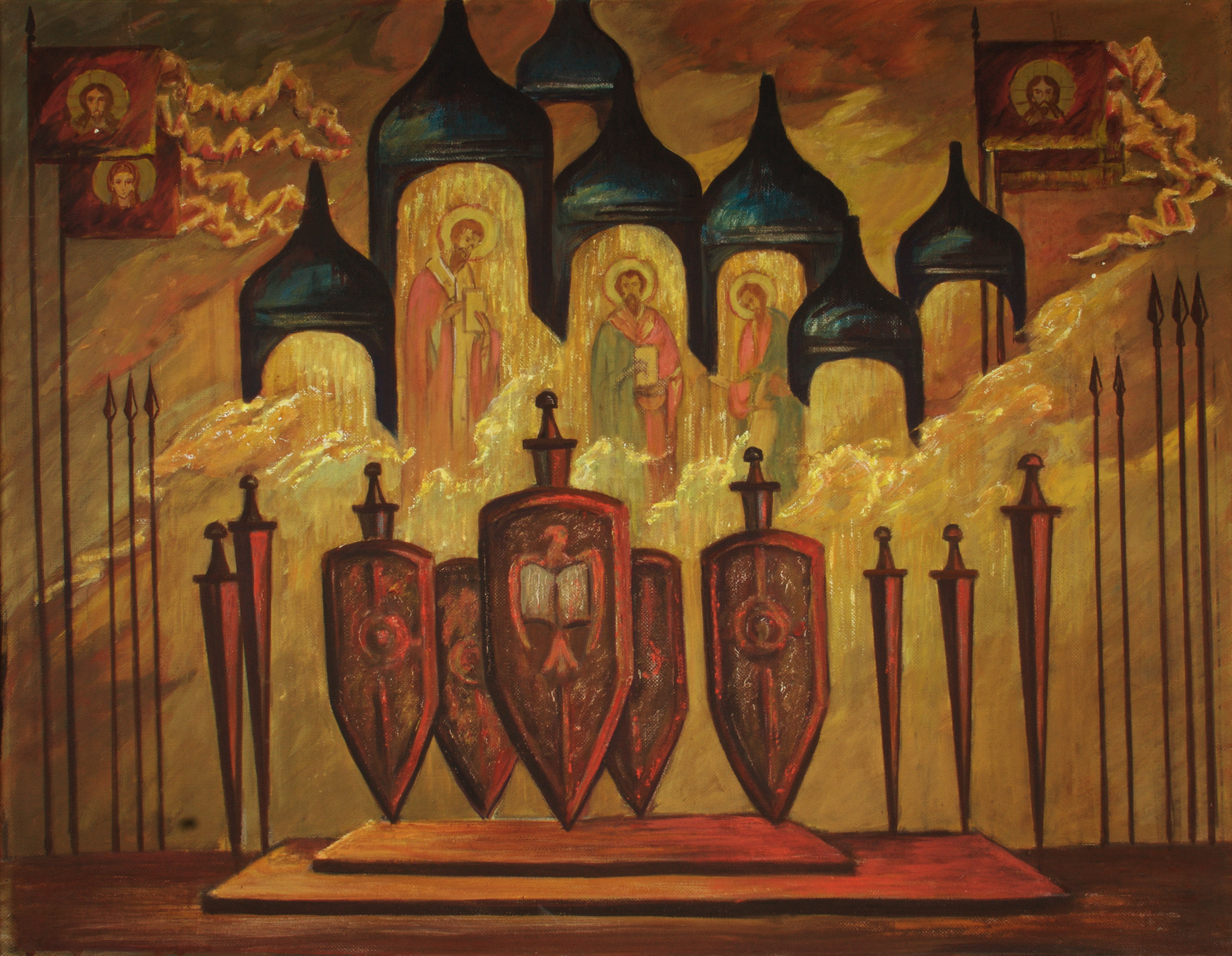 Несколько произведений на экспозиции посвящены священникам и православным храмам, как образам веры и незыблемости духовной силы русского человека в произведениях Николая Соломина, Григория Гритчина, Владимира Соколинского, Геннадия Кудрявцева, Иосифа Бобенчика, Виктора Березина