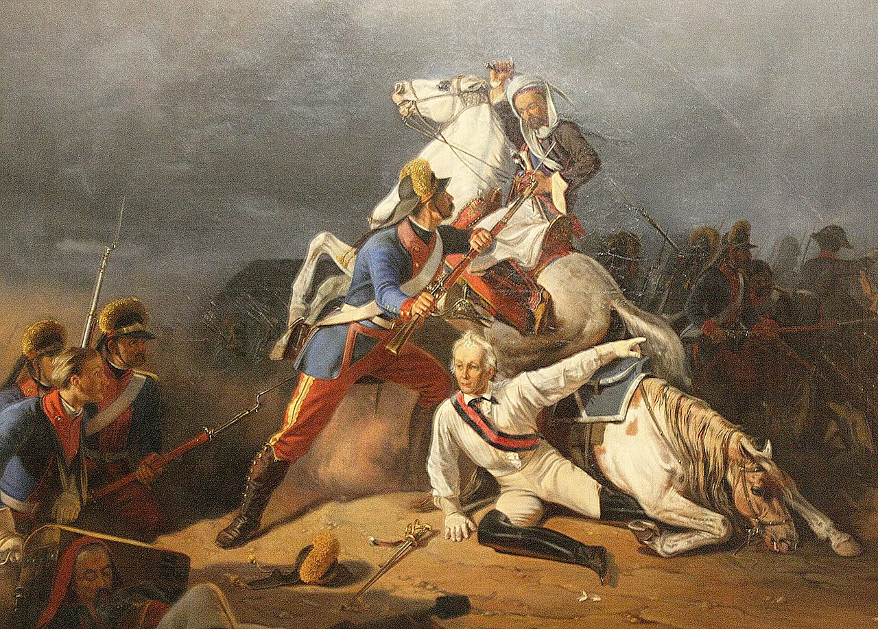 Константин Кеппен. Спасение генерал-аншефа А. В. Суворова гренадёром Степаном Новиковым в сражении при Кинбурне 1 октября 1787 года (1855). Государственный мемориальный музей А. В. Суворова (г. Санкт-Петербург) Константин Кеппен. Спасение генерал-аншефа А. В. Суворова гренадёром Степаном Новиковым в сражении при Кинбурне 1 октября 1787 года (1855). Государственный мемориальный музей А. В. Суворова (г. Санкт-Петербург) / Фото: Генералиссимус князь Суворов соч. А. Петрушевского С. - Петербург, типография М. М. Стасюлевича, Вас. Остр., 2 лин. 7. 1884, Общественное достояние.