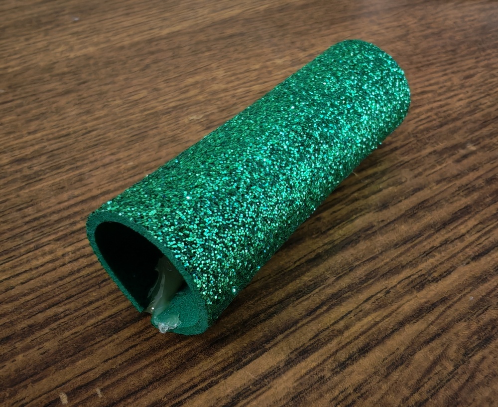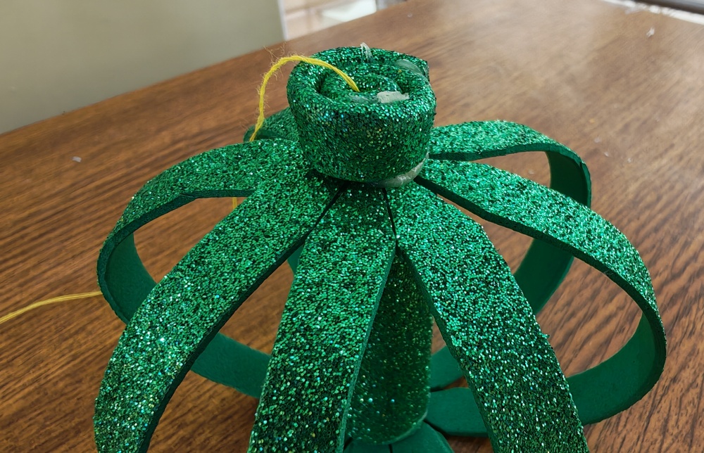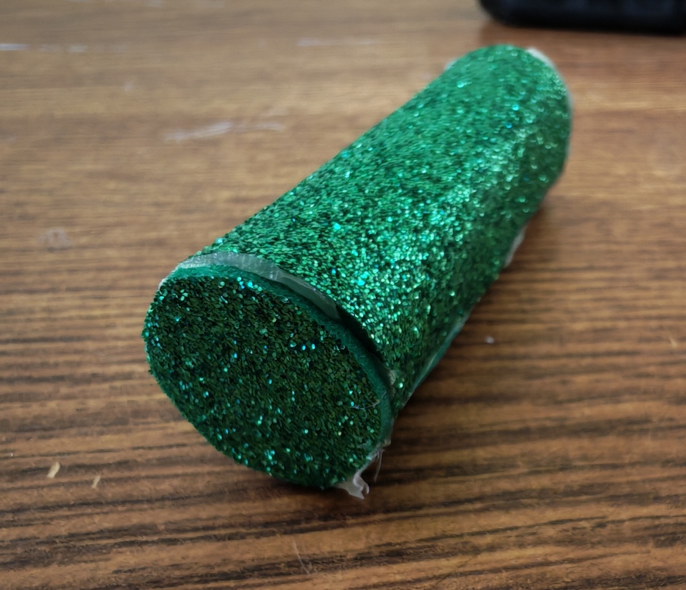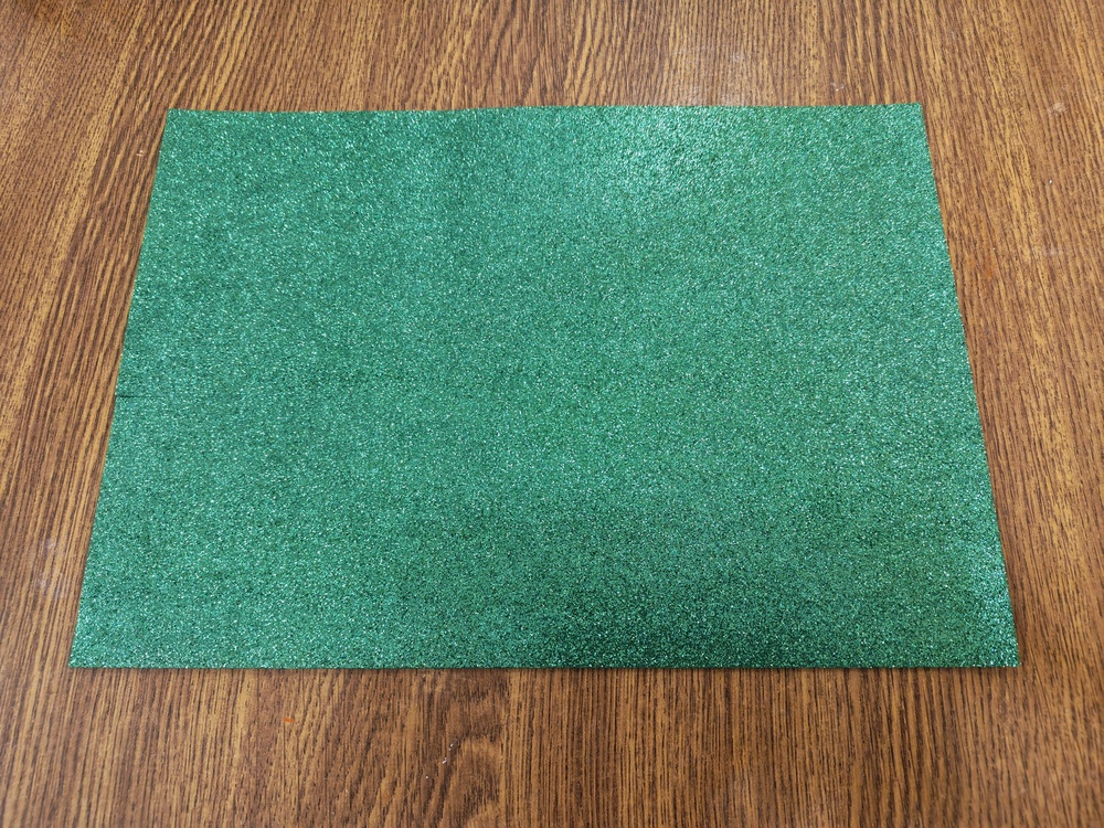 Возьмите лист фоамирана формата А4 любого понравившегося вам цвета. Маша, например, решила сделать зелёный и золотистый шарики.