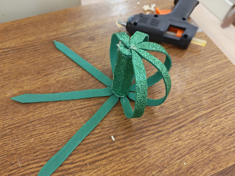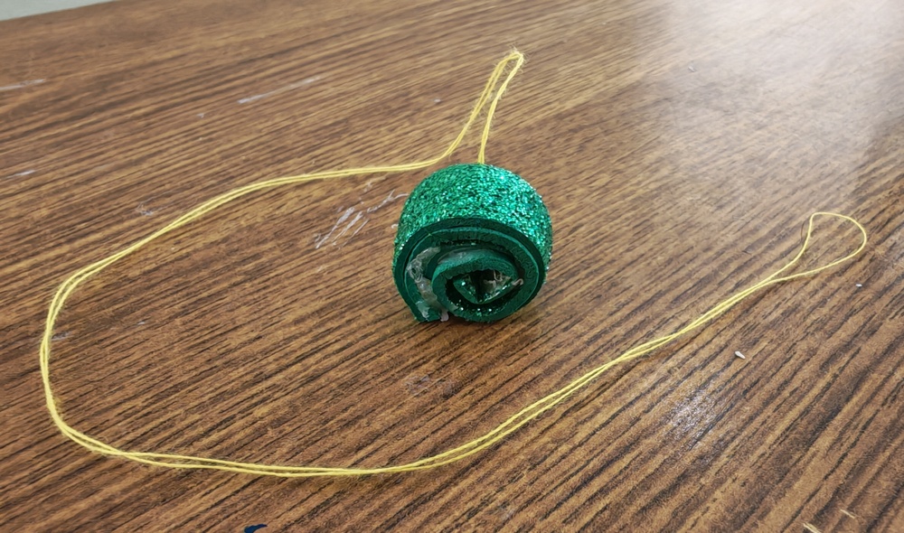 Сверните в рулончик и проклейте верхнюю часть шарика.
