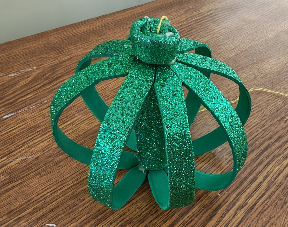 Всё! Наш шарик-фонарик готов! Пока есть время до Нового года, можно смастерить ещё парочку ёлочкиных нарядов.