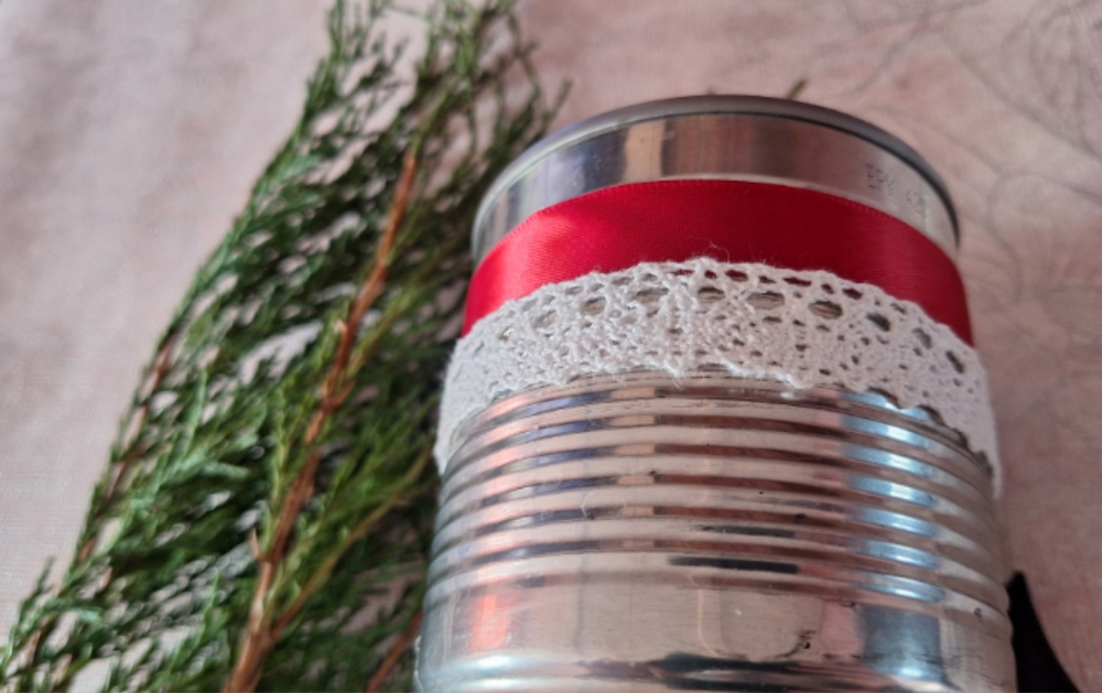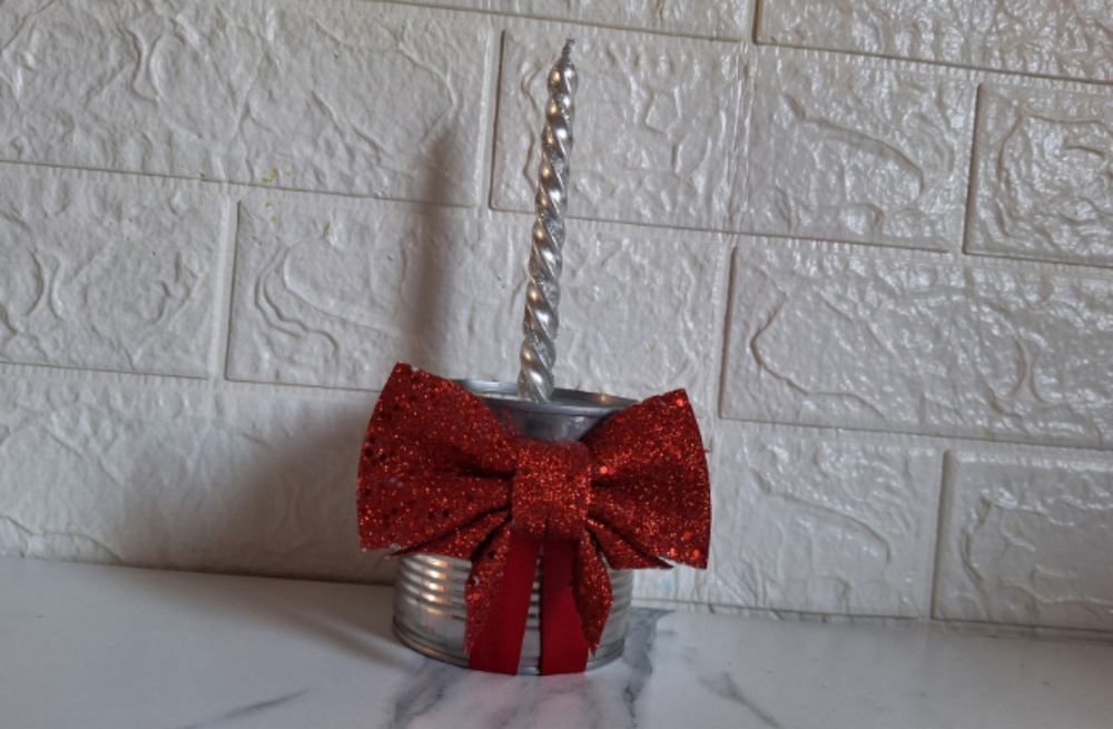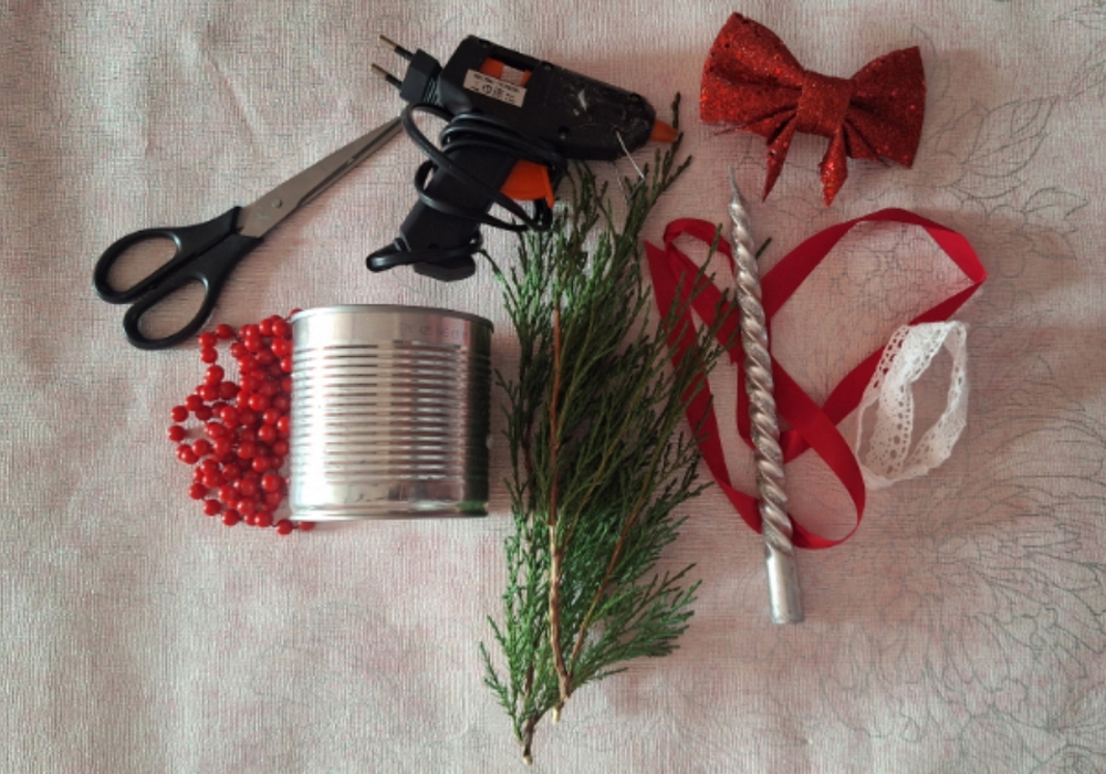 6. Аккуратно вставляем в банку веточки вокруг свечи. Красивый новогодний декор готов! С наступающим Новым годом!