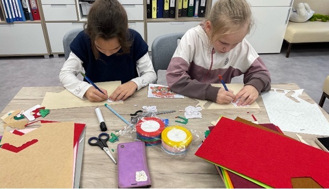 В творческом объединении «Волшебная мастерская» учреждения допобразования «Ровесник» вовсю царит новогодняя атмосфера. Здесь некогда скучать – ведь ребята готовятся к празднику и создают из фетра нарядные игрушки для новогодней ёлки!