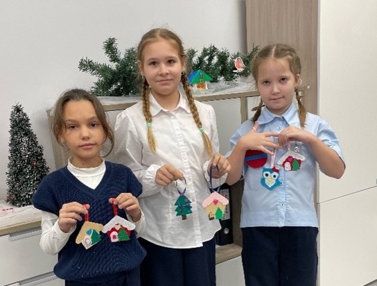 Вот такие замечательные домишки, ёлочки, ангелочки, совушки, лошадки и другие оригинальные игрушки в руках учащихся!