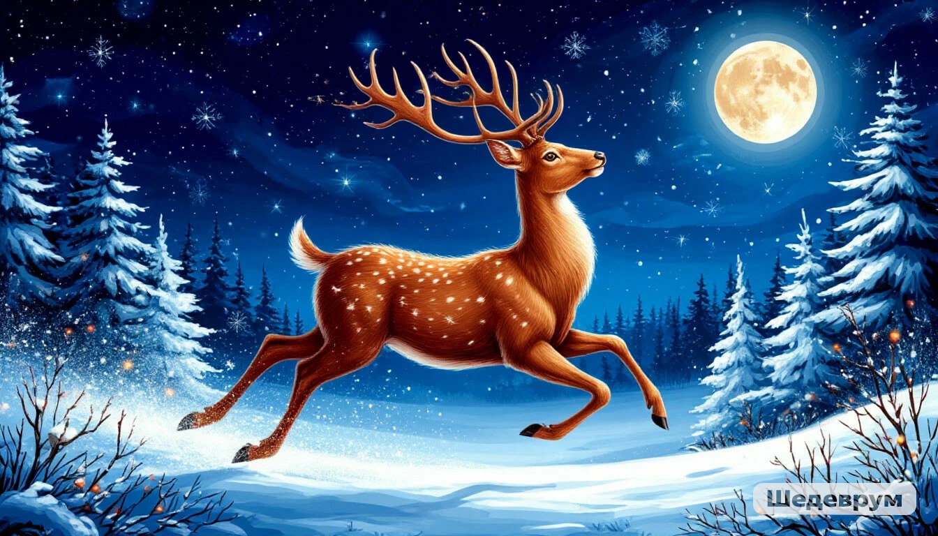 В большом городе, в маленькой квартирке на десятом этаже, жила девочка Варя. Её родители ссорились, и Варя боялась, что Новый год будет испорчен. Она сидела у окна и смотрела на снег, который никак не мог решить, идти ему или нет. Снегурочка, невидимая, вошла в комнату. Она коснулась стекла, и на нём расцвёл чудесный узор – олень, летящий к звезде.