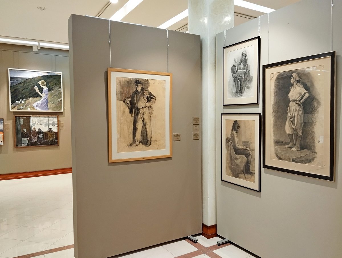 Экспозиция разделена на несколько частей. В одной — академический рисунок. Здесь можно увидеть, как художники учатся передавать форму и свет с помощью простого карандаша и угля.