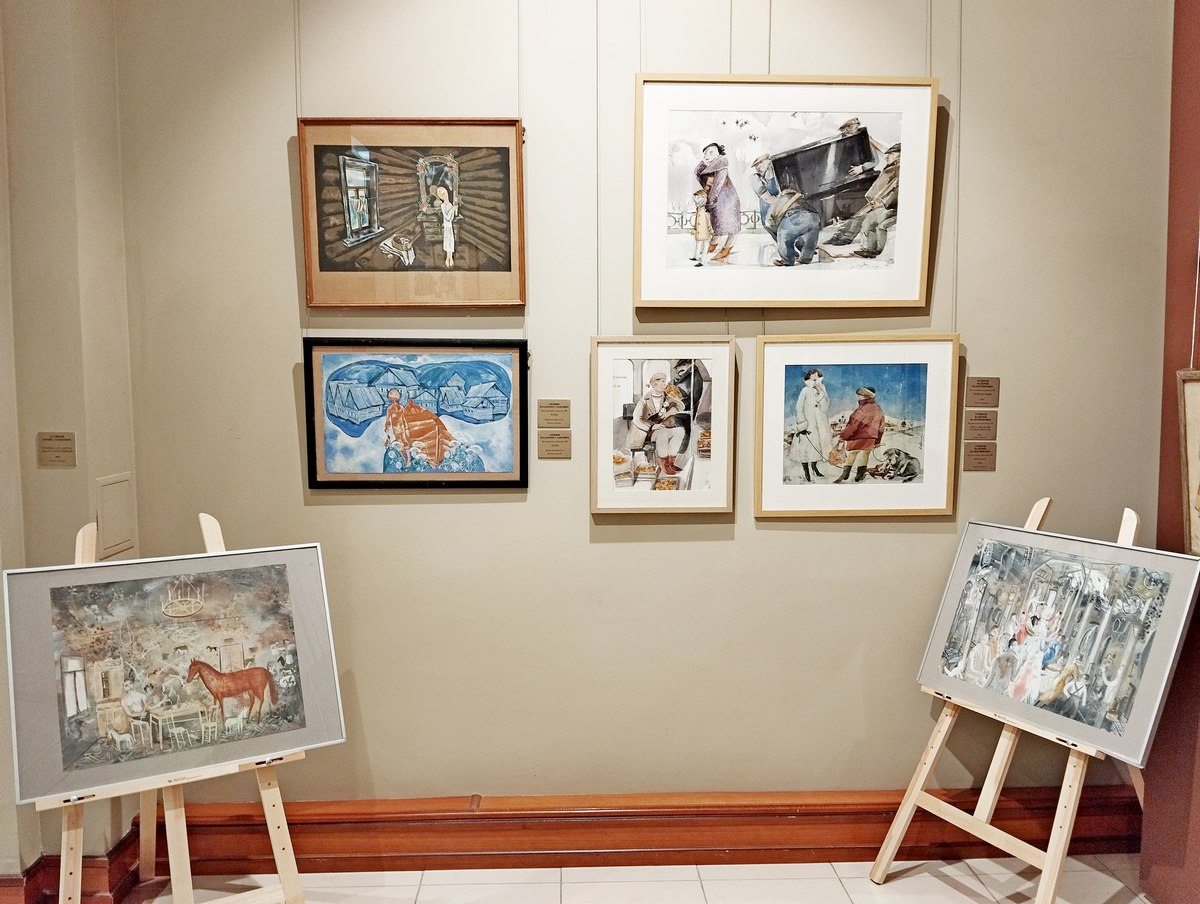 Особенное место занимают работы народного художника России Анатолия Кузнецова. Он был художником-постановщиком таких известных фильмов, как «Сказка о Царе Салтане» и «Женитьба Бальзаминова». А ещё на выставке можно заглянуть в его личные дневники! В них — целая жизнь: зарисовки со съёмочных площадок, впечатления от путешествий и тонкие наблюдения за окружающим миром. Это как читать увлекательный графический роман!