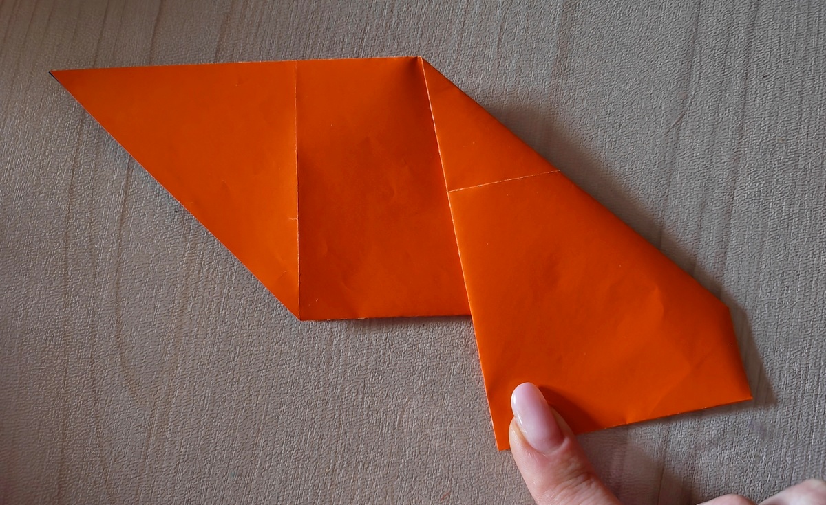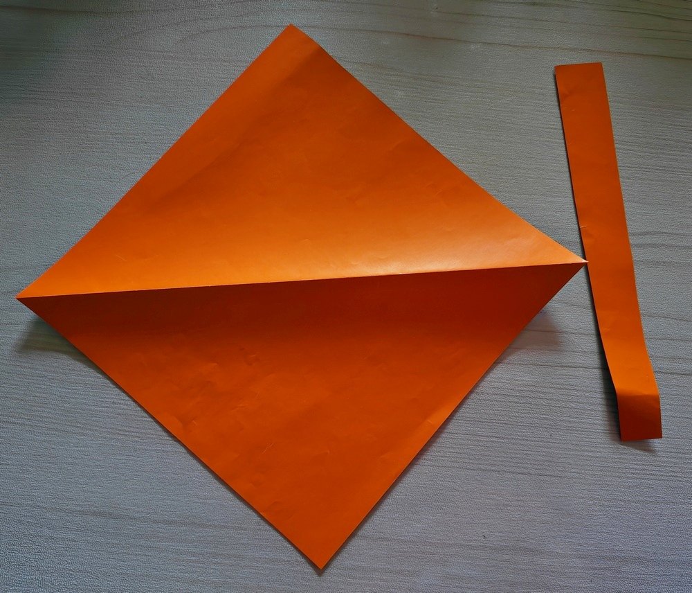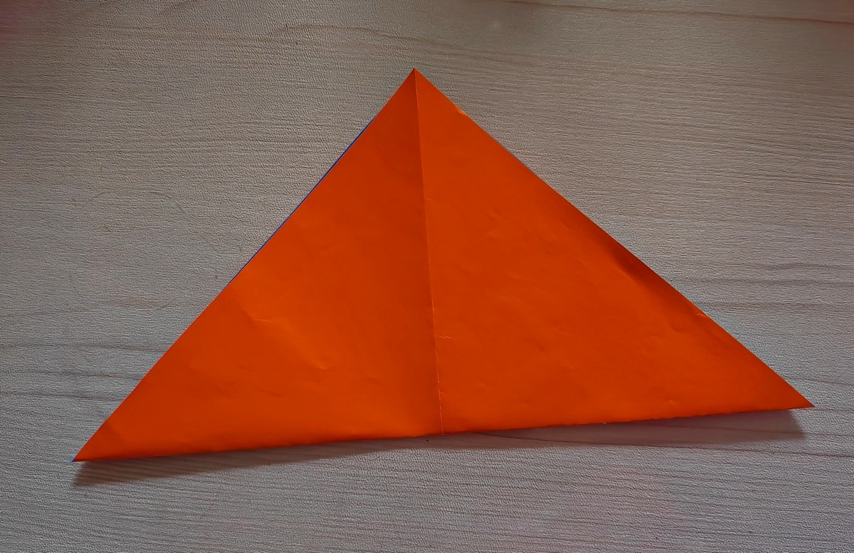 Сложенный квадратик сложите вдвое, чтобы у вас получился треугольник.