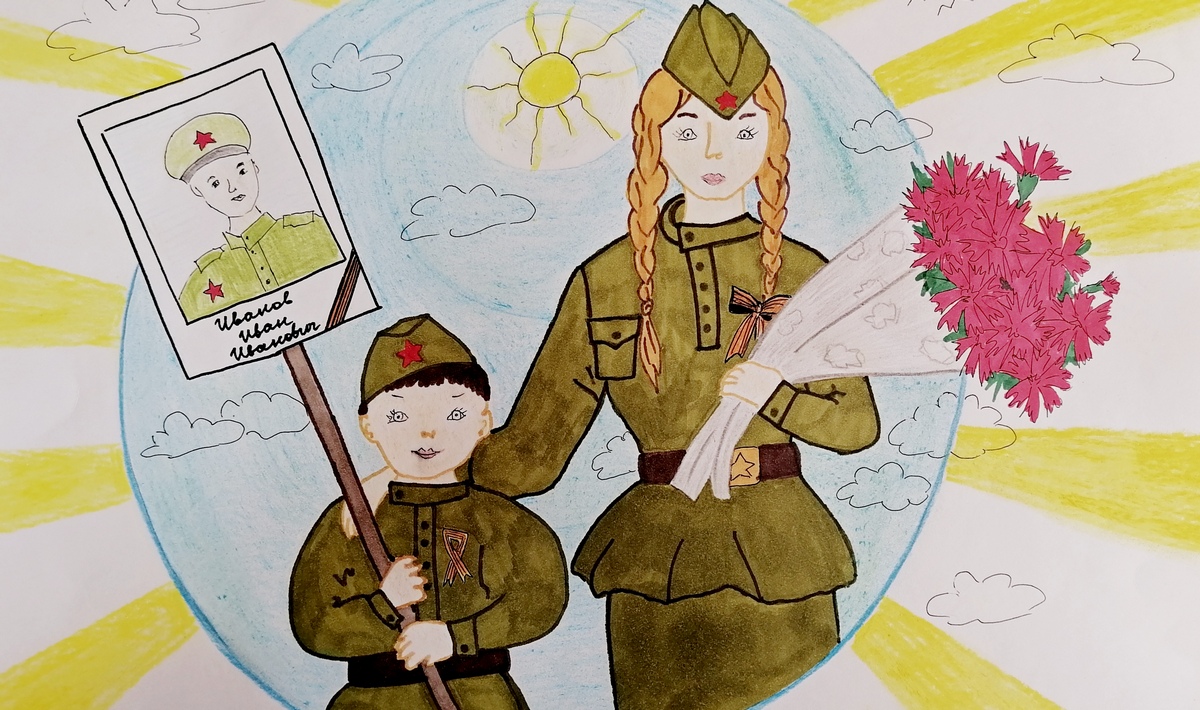 В оформлении публикации использованы работы победителей и призёров номинации «Рисую Победу».