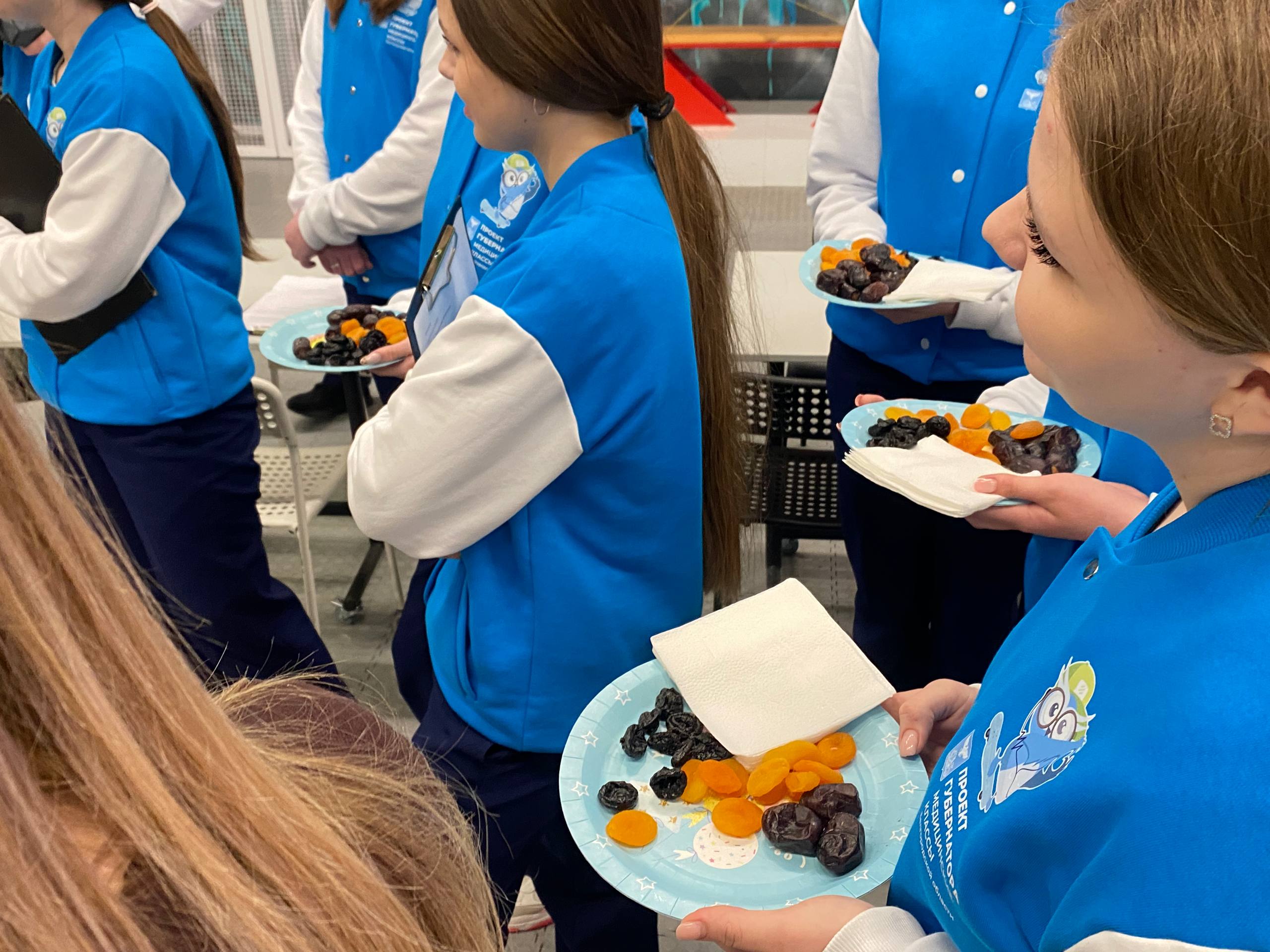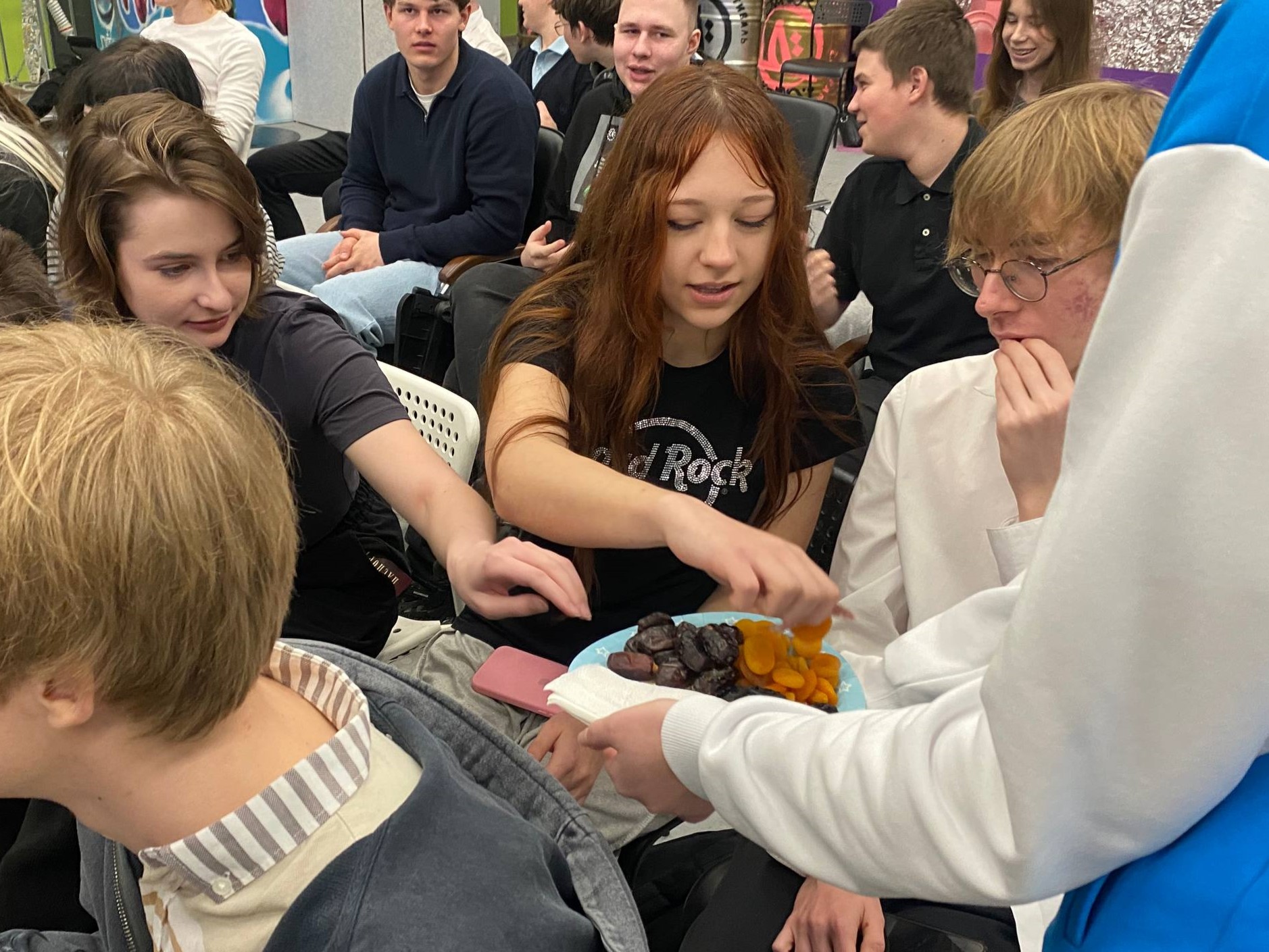 В конце встречи учащиеся угостили гостей полезными сладостями — финиками, курагой и черносливом.