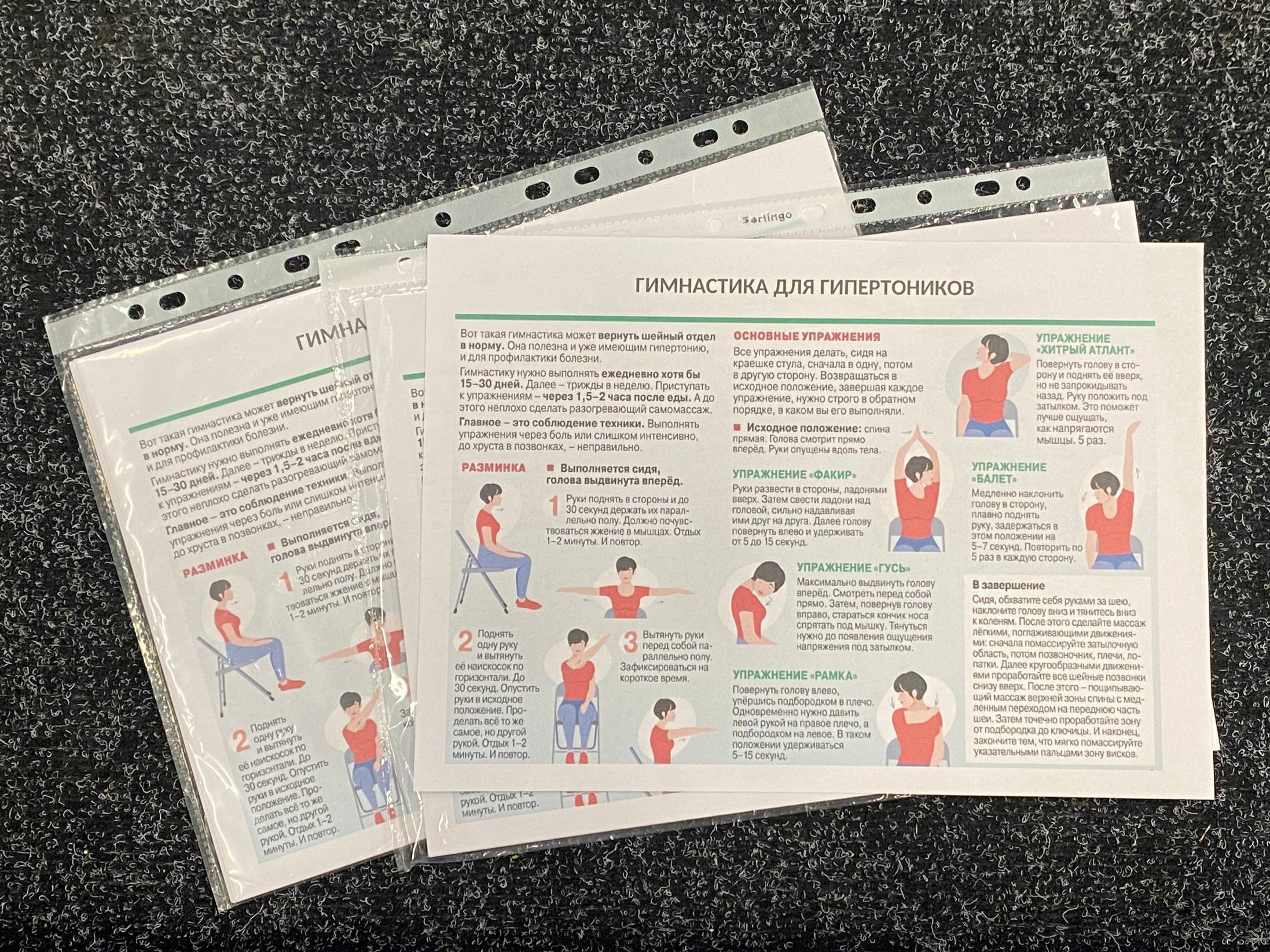 Также школьники провели гимнастику для гипертоников: показали упражнения, а слушатели повторили их и получили буклеты с подробным описанием упражнений и картинками.