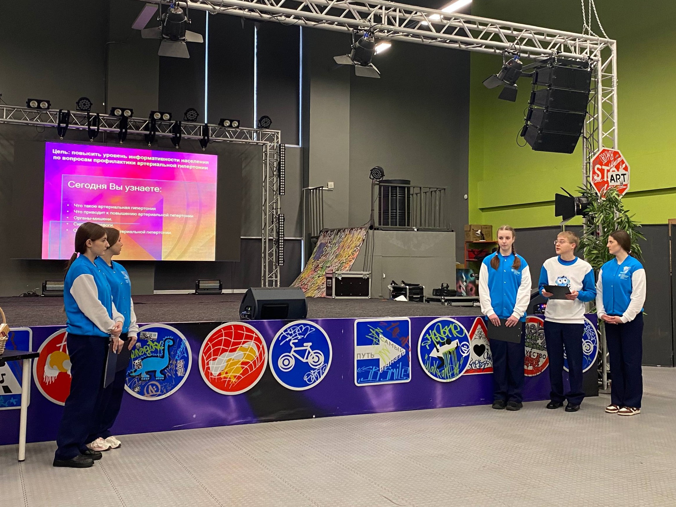 Учащийся 10 «В» медицинского класса Александр Кудинов провёл мастер-класс по правильному питанию. Присутствующие собрали корзину продуктов, которые разрешены людям с повышенным давлением. Доброволец из аудитории поделил все продукты на полезные и вредные, а эксперт объяснил, почему тот или иной продукт можно или нельзя употреблять гипертоникам. Среди полезных: фрукты и овощи, гранатовый сок и даже горький шоколад.
