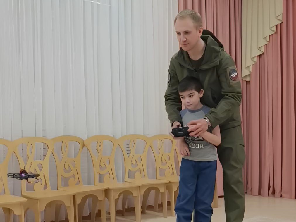Инструктор Илья Чухманцев и студент Олег Жиронкин превратили сложное занятие в захватывающее приключение. Малышам объяснили, как устроены дроны и как они помогают людям в мирной жизни: например, в сельском хозяйстве или при спасении лесов.