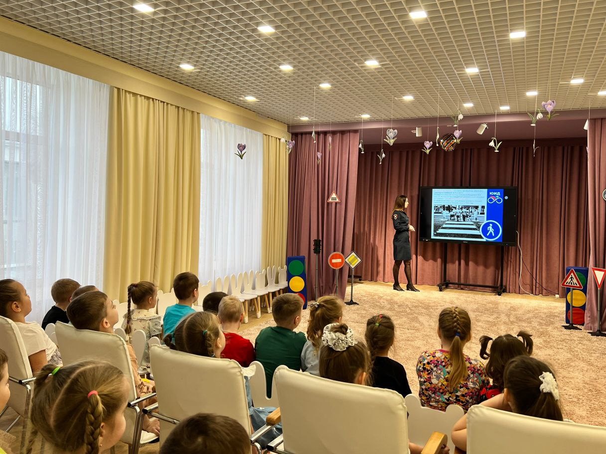 Инспектор Госавтоинспекции рассказала ребятам о том, как правильно читать «язык дорог», на что ориентироваться при переходе проезжей части и почему даже самый внимательный пешеход должен всегда останавливаться перед «зеброй».