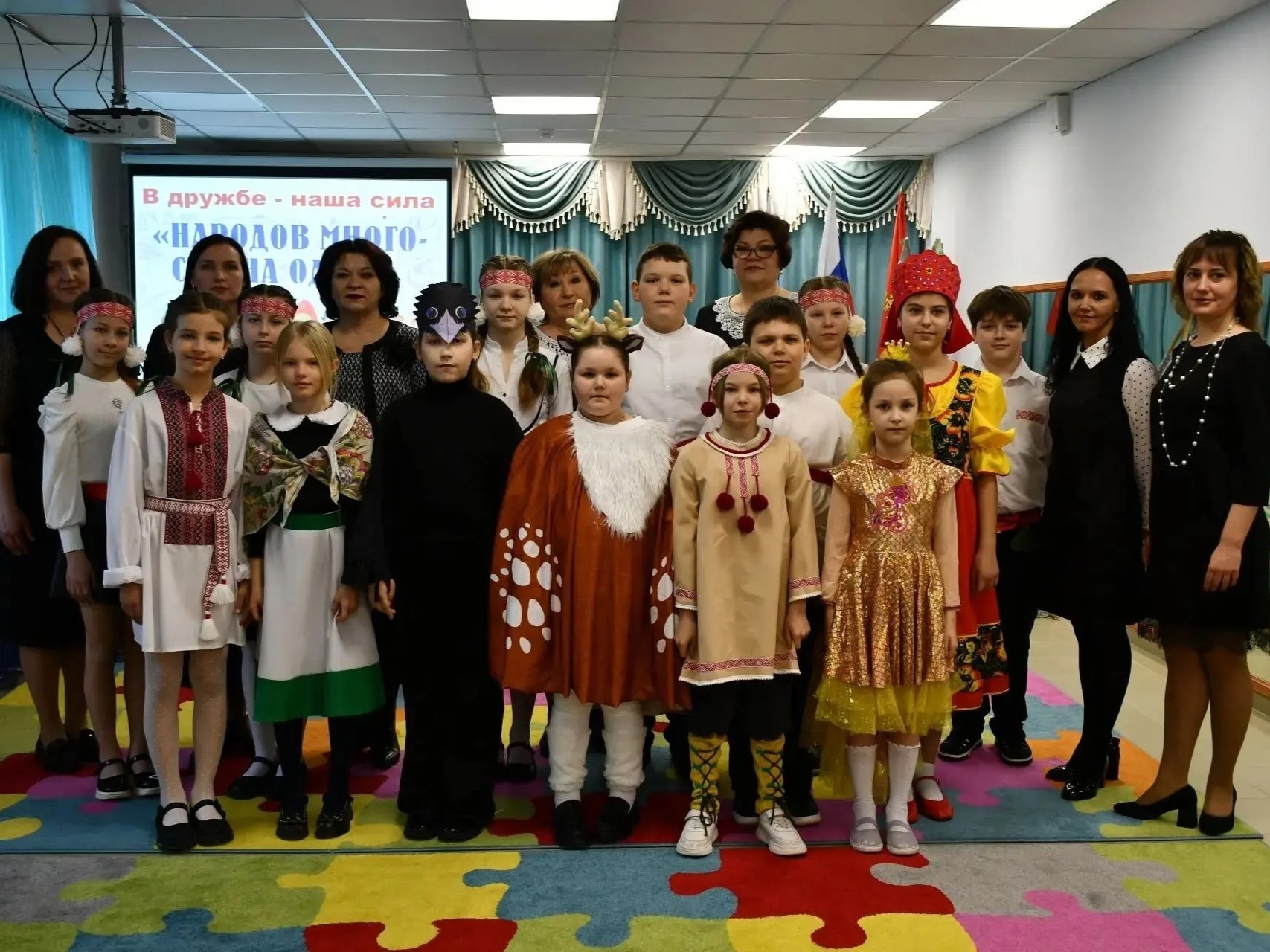 Затем творческую эстафету приняла Борисовская начальная школа имени Кирова. Юные артисты подготовили номера, охватывающие всю географию страны: от трогательных песен о матери на чувашском языке до театральных постановок по мотивам ненецких сказок о северных оленях. После концерта школьники вместе с наставниками перешли к активной части — освоению национальных забав: чувашских, осетинских, дагестанских и якутских игр.