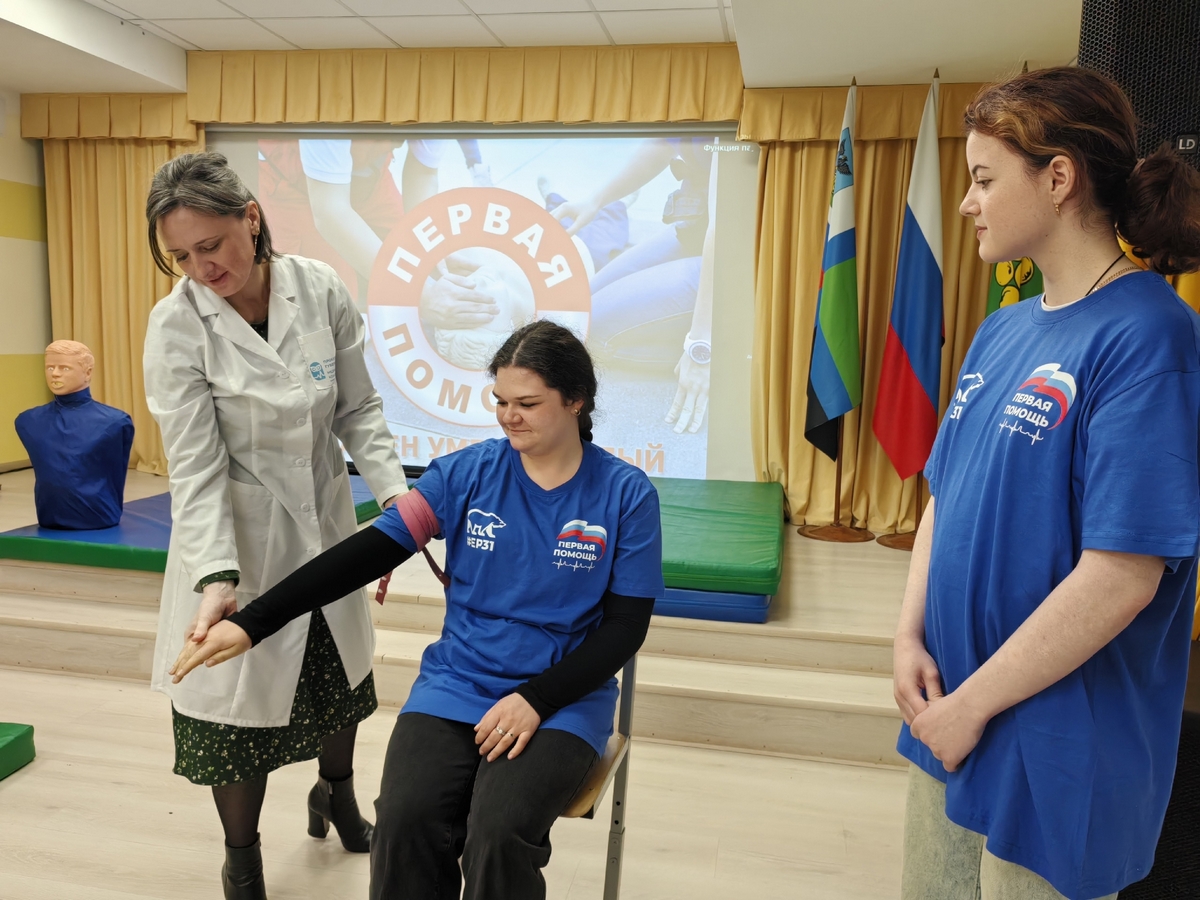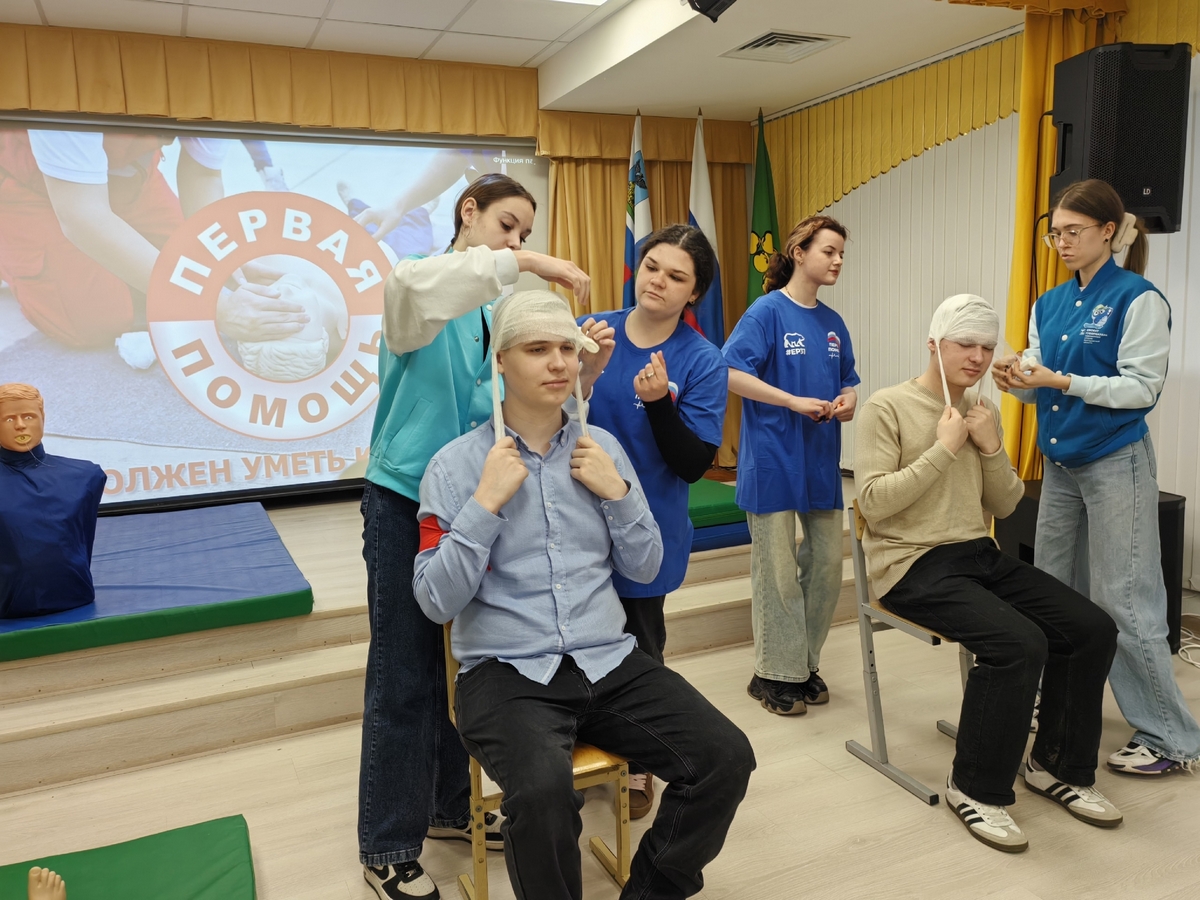 Участники занятия на практике разобрали алгоритмы действий при травмах и неотложных состояниях. Особое внимание уделили правилам безопасности при использовании масок и перчаток, обработке ран и дезинфекции. Самые активные школьники получили подарки: свои собственные «Портфели первой помощи».