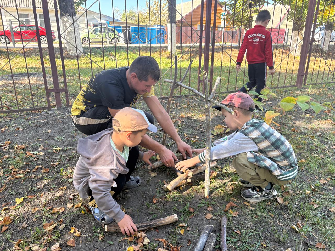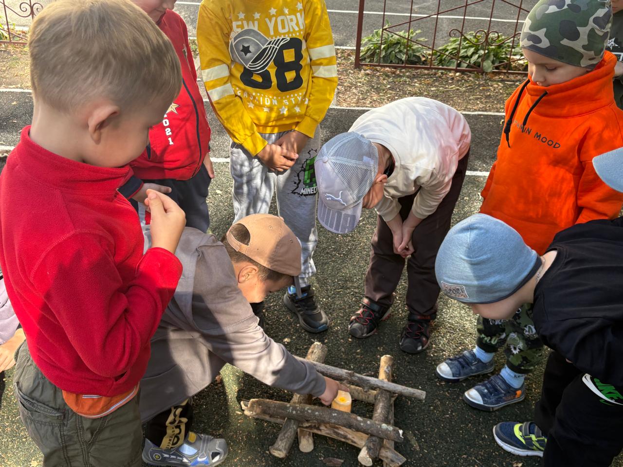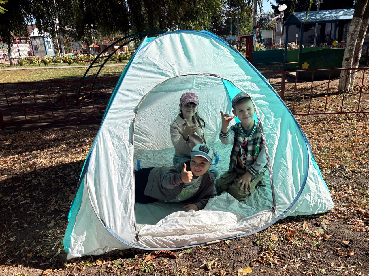 С самого утра ребята готовились к путешествию: собирали рюкзаки с «провиантом», надевали удобную обувь. Особую помощь в организации похода оказал папа Артёма, умело соорудивший настоящий костёр (разумеется, без огня!) и установивший палатку, в которую все мечтали заглянуть.