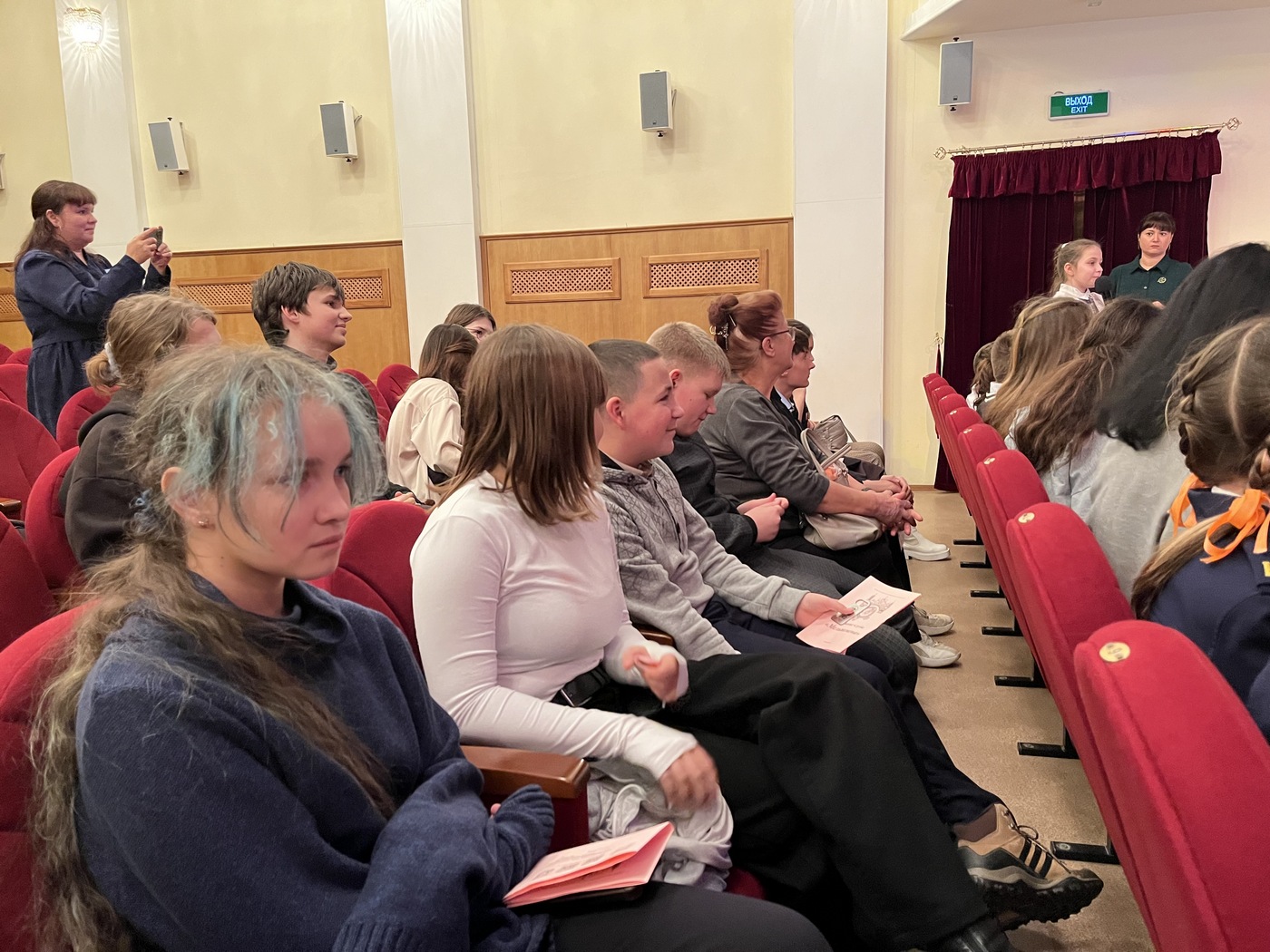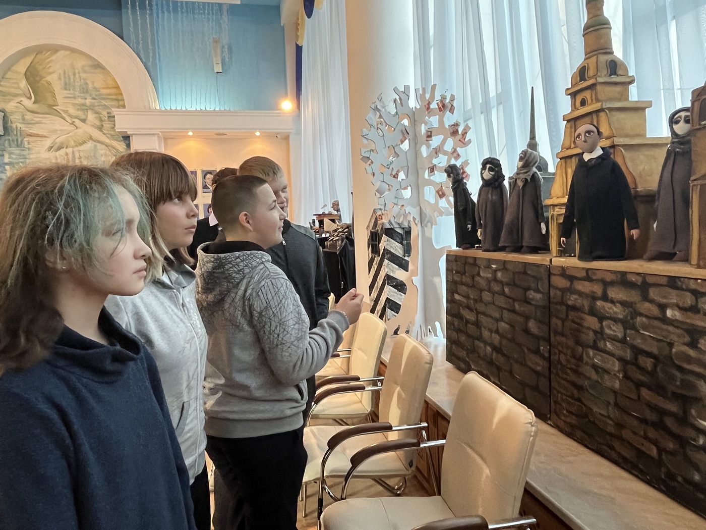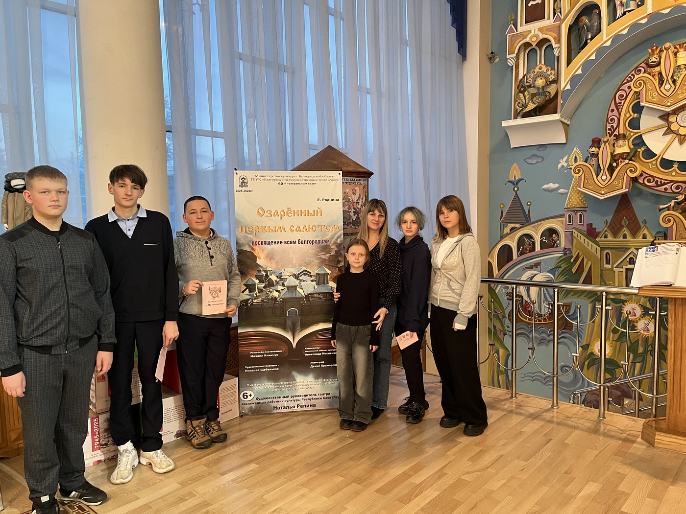 Старшая группа детского объединения «Своя территория» учреждения дополнительного образования «Ровесник» г. Белгорода отправилась в Белгородский государственный театр кукол в рамках заседания клуба «Мельпомена». Ребята посмотрели премьеру спектакля «Озарённый первым салютом», который посвящён любви к родному белгородскому краю, мужеству взрослых и детей, а также силе духа белгородцев на протяжении всей истории.