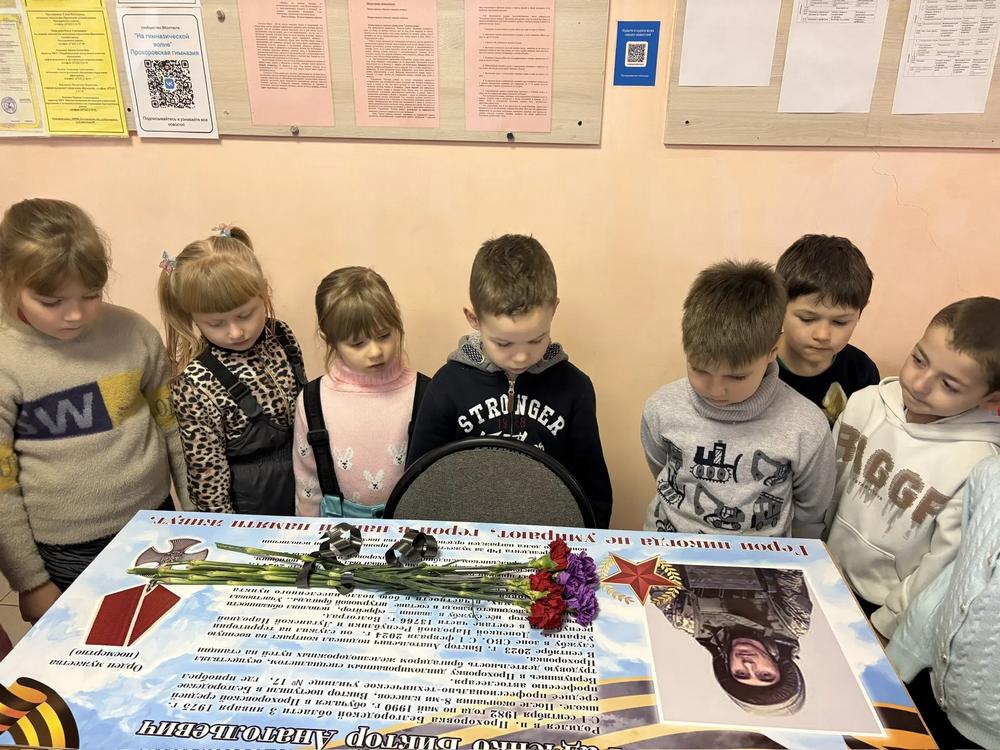 Сегодня, в День Героев Отечества, воспитанники подготовительной группы детского сада № 1 «Ромашка» п. Прохоровка посетили Прохоровскую гимназию, чтобы почтить память героев Великой Отечественной войны и участников специальной военной операции.