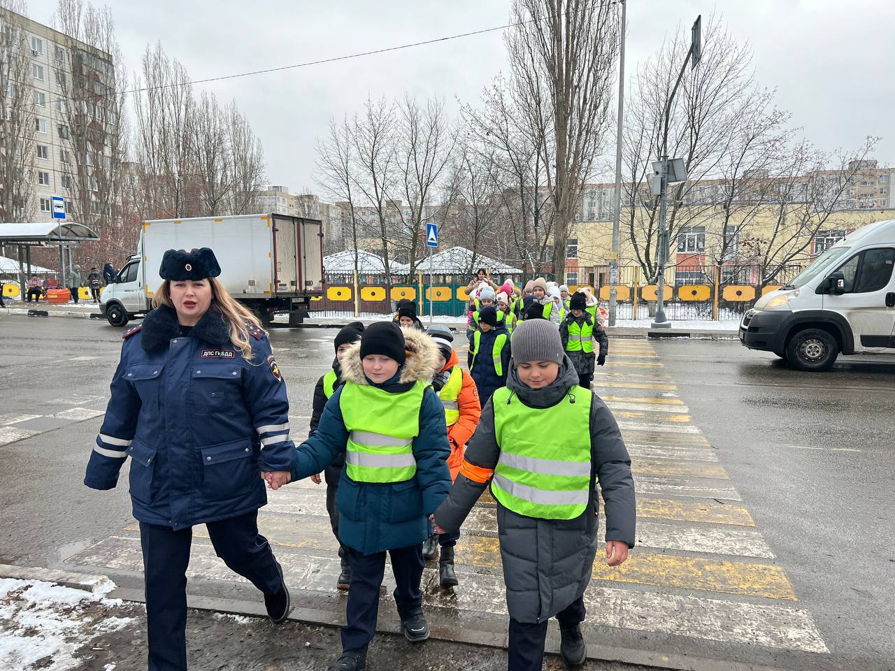 В Старом Осколе сотрудники Госавтоинспекции совместно со школьниками организовали акцию «Шагающий автобус».