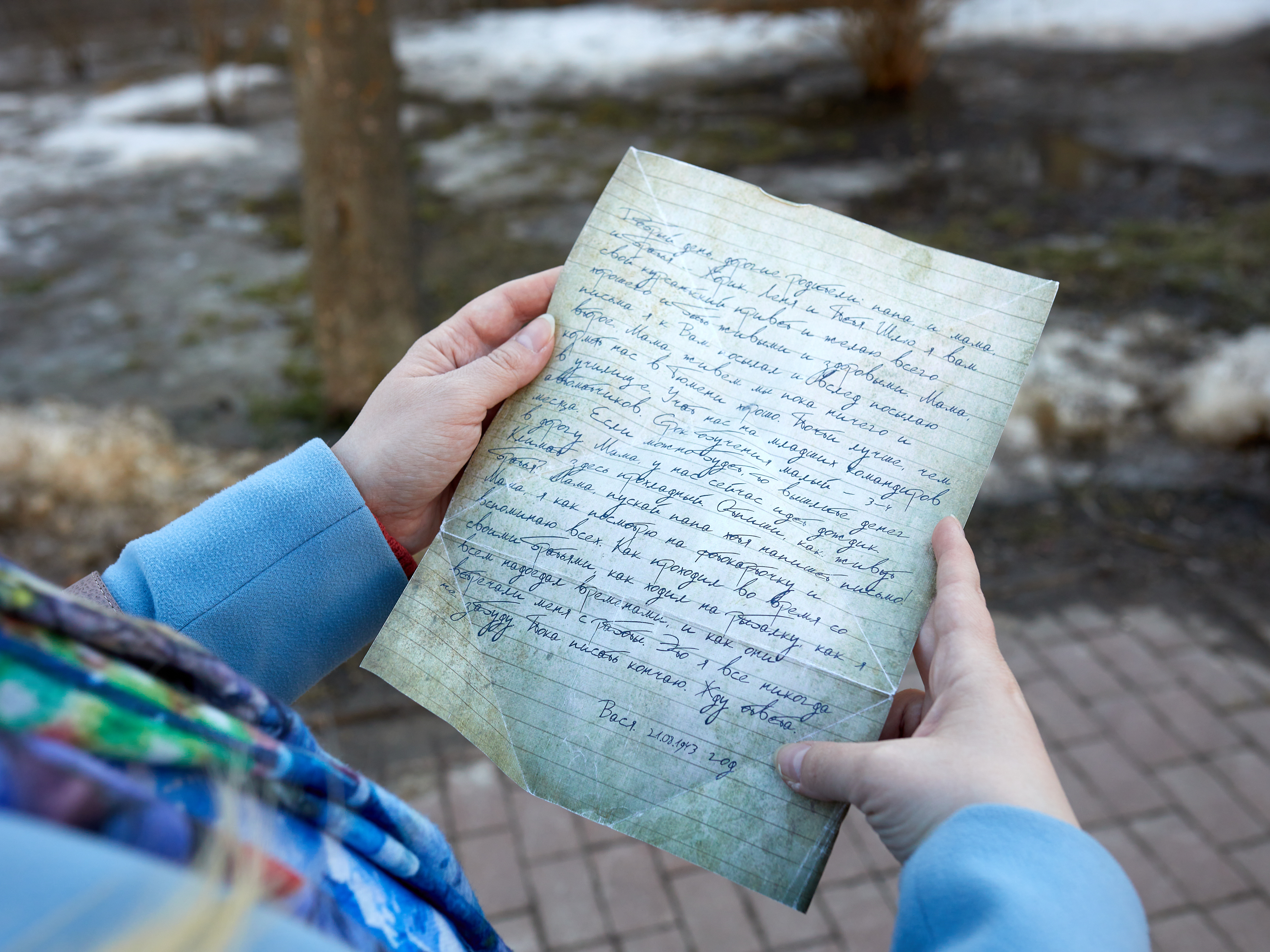 В наушниках бабушка отвечает на вопросы любопытного внука о Великой Отечественной войне. Мы садимся на лавочки неподалёку от Вечного огня, и Инна Хопина раздаёт копии фронтовых треугольников. В аудиопрогулку вошли реальные фрагменты писем, которые отправлялись с фронта и на фронт. Я разворачиваю треугольник, оказавшийся у меня в руках. Письмо датировано 1943 годом. Курсант Вася пишет своим родителям… Что ждало его впереди? Вернулся ли он к своей семье или погиб в бою? Пока я задаюсь этими вопросами, на нашу группу с интересом поглядывают прохожие.