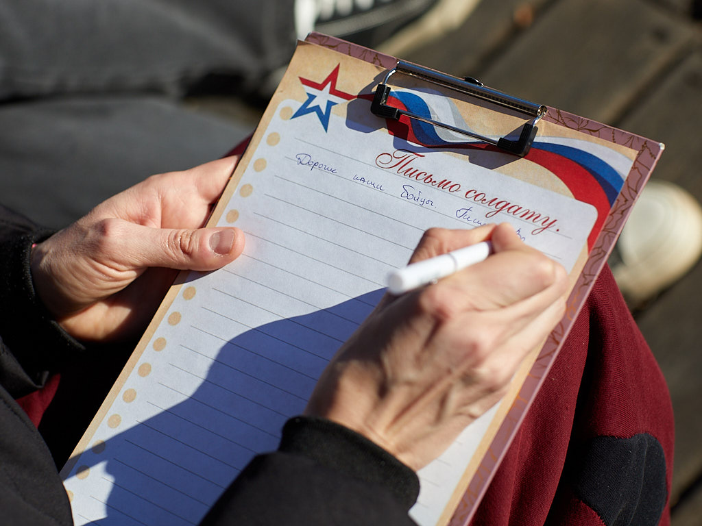 В конце всем желающим участникам иммерсивной прогулки предлагают присесть на набережной и написать несколько тёплых слов для бойцов, которые сейчас сражаются на фронте.