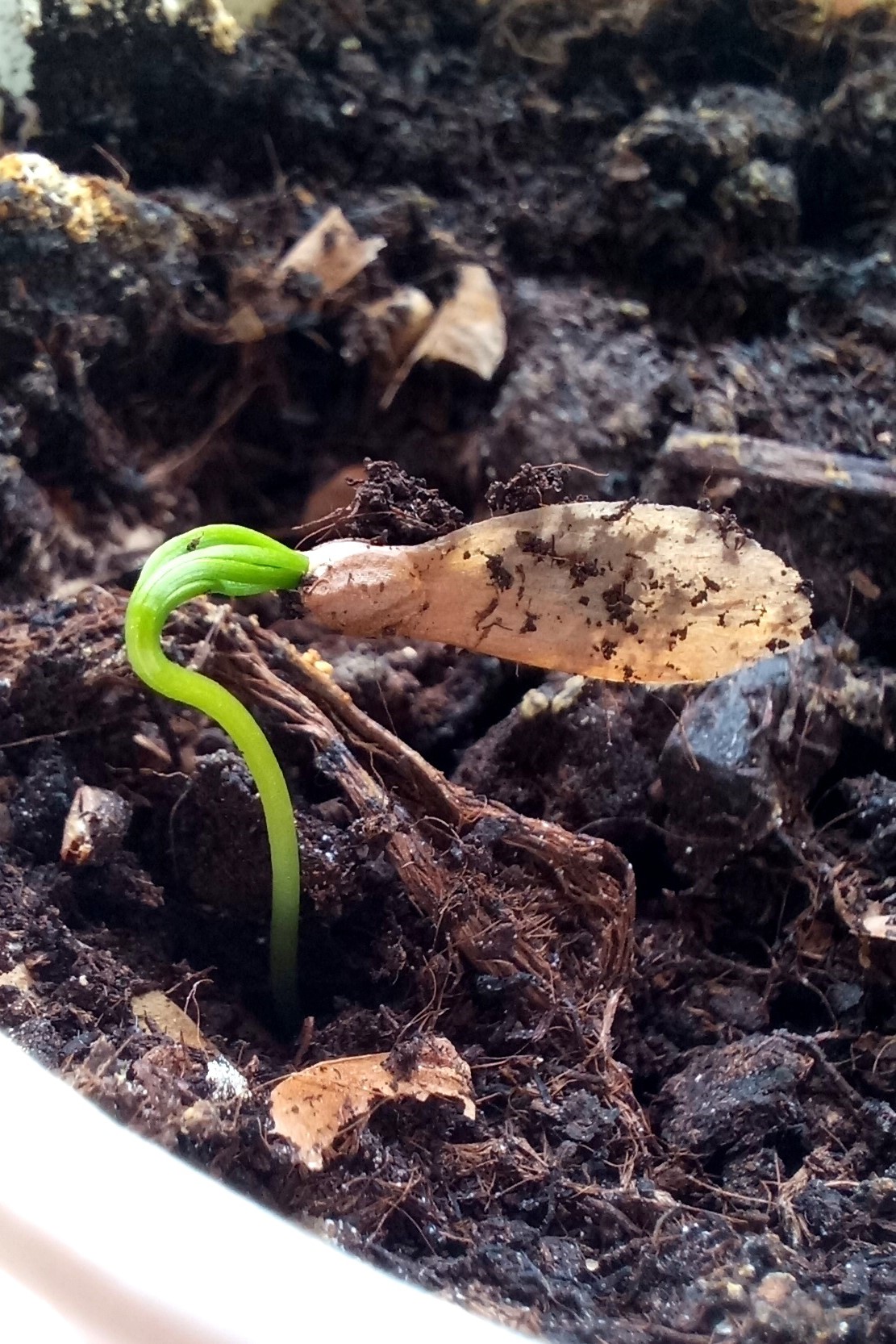 Несмотря на то, что семена кипариса капризны и требуют обязательной искусственной стратификации, ребята решили рискнуть и посадили их без подготовки. Итог — 20% всхожести (3 ростка из 15).