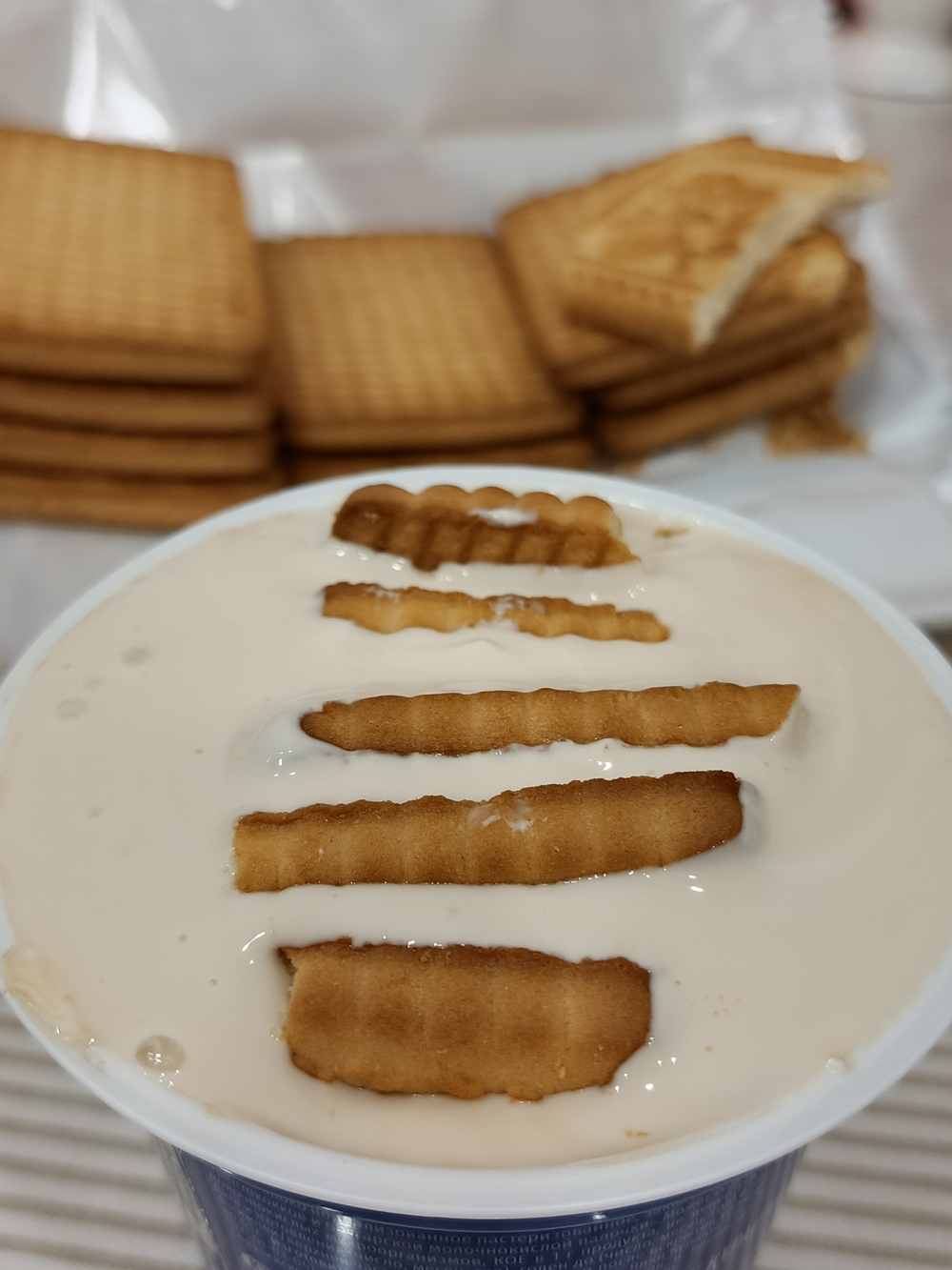 1.Готовим десерт прямо в баночке греческого йогурта. И для начала съешьте пару ложек его. Серьёзно! Так надо, иначе крышка не закроется из‑за йогуртовой массы, вытесненной печеньем.