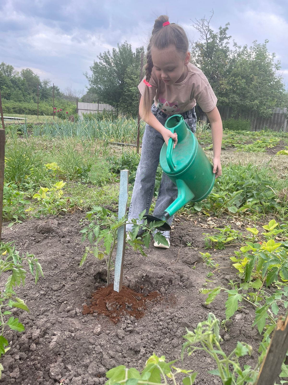 «Лунку помидора без цветка удобрила кофейным жмыхом, а лунку помидора с цветком оставила без изменения. В течение лета я ухаживала за каждым кустом и получила следующий результат: завязь и созревание плодов произошли раньше на кусте, который я удобряла кофейной гущей», – говорит второклассница.