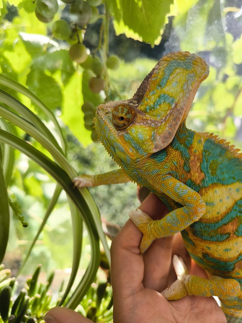 Мы быстро нашли дома место для террариума – среди маминых цветов, как в джунглях. Первое время Авессалом немного нервничал и привыкал к нам. Но уже скоро стал позволять брать себя на руки. Ему понравилось сидеть у меня на плече и пытаться залезть ко мне на голову. А ещё есть из моих рук кусочки яблок. Так мы подружились.
