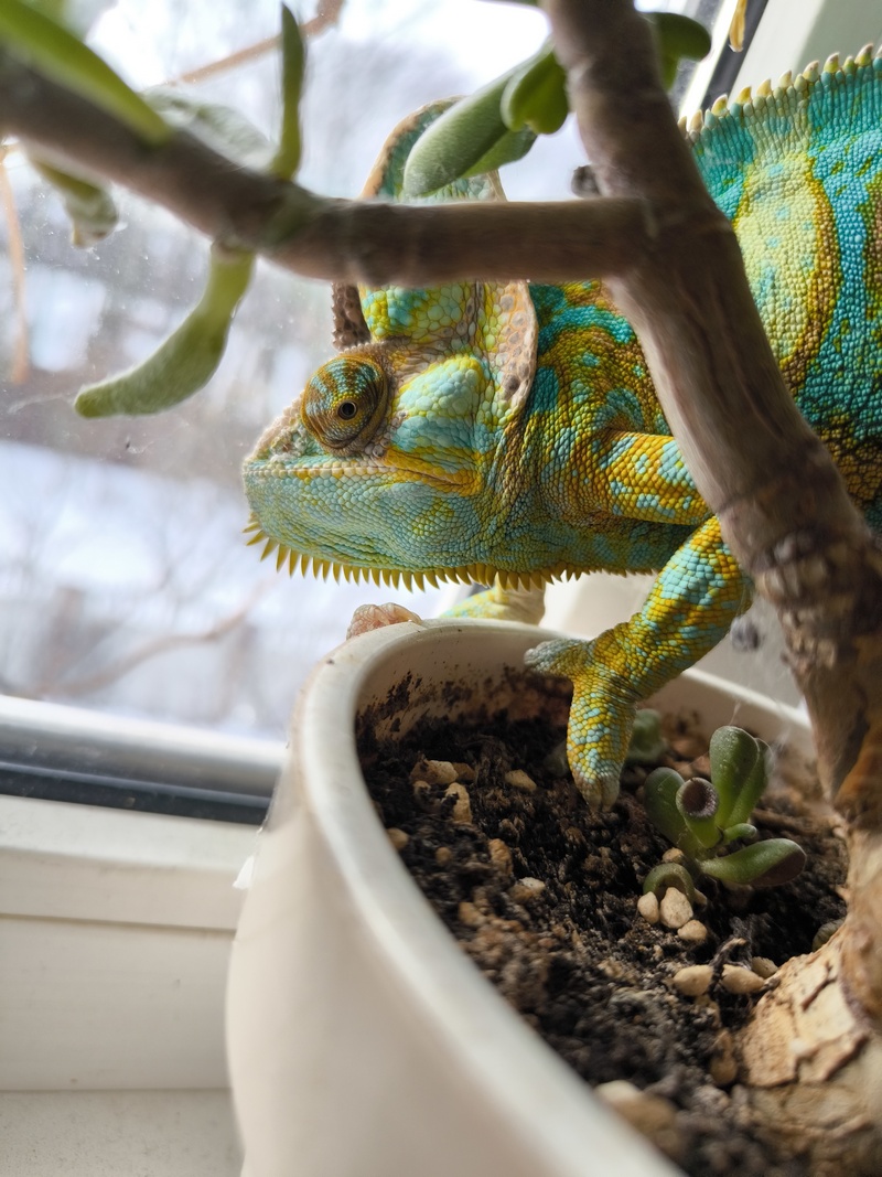 Раньше я видел хамелеонов только на картинках и в экзотариуме нашего зоопарка. Но вот уже полгода Авессалом, или, по‑домашнему, Вася, живёт с нами.