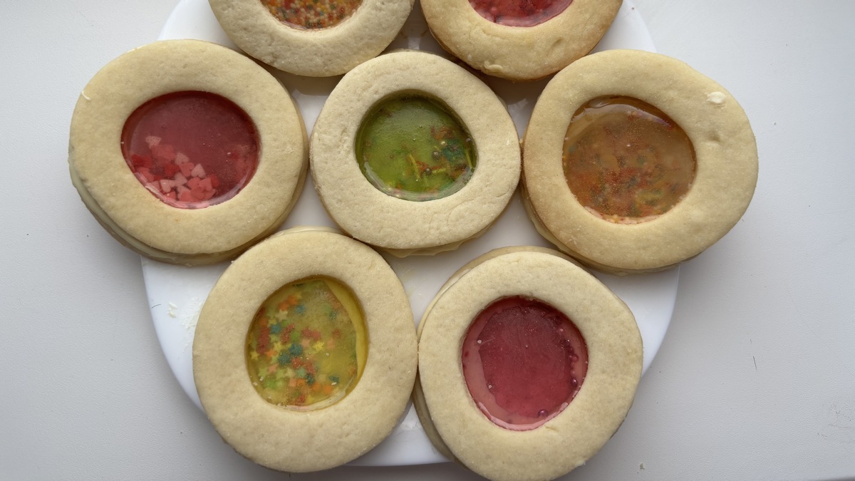 Если хочется не просто испечь что‑то к чаю, а сделать украшение для стола – этот вариант идеален. Печенья с прозрачными окошками выглядят так, будто их делали в кондитерской. А если склеить две половинки и насыпать внутрь разноцветную посыпку, получится печенье-погремушка – с виду даже не подумаешь, что это что‑то съедобное.