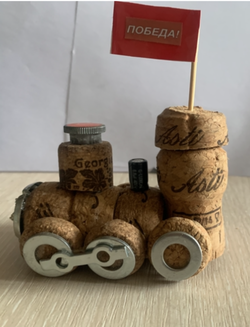По условиям конкурса участникам нужно было прислать историю о герое своей семьи и смастерить сувенир из вторсырья для бойцов специальной военной операции. По мнению жюри, лучшим сувениром-подарком стал «Поезд Победы» из учреждения «Ровесник» г. Белгорода. Выполнен он из пробкового материала, который мы, конечно, выбрасываем: экологически чистый, хорошо поддаётся резке, легко склеивается и прокалывается, поэтому вполне может заменить пластик и металл. А вот в комбинации с металлом изделия из пробки смотрятся ещё интересней.